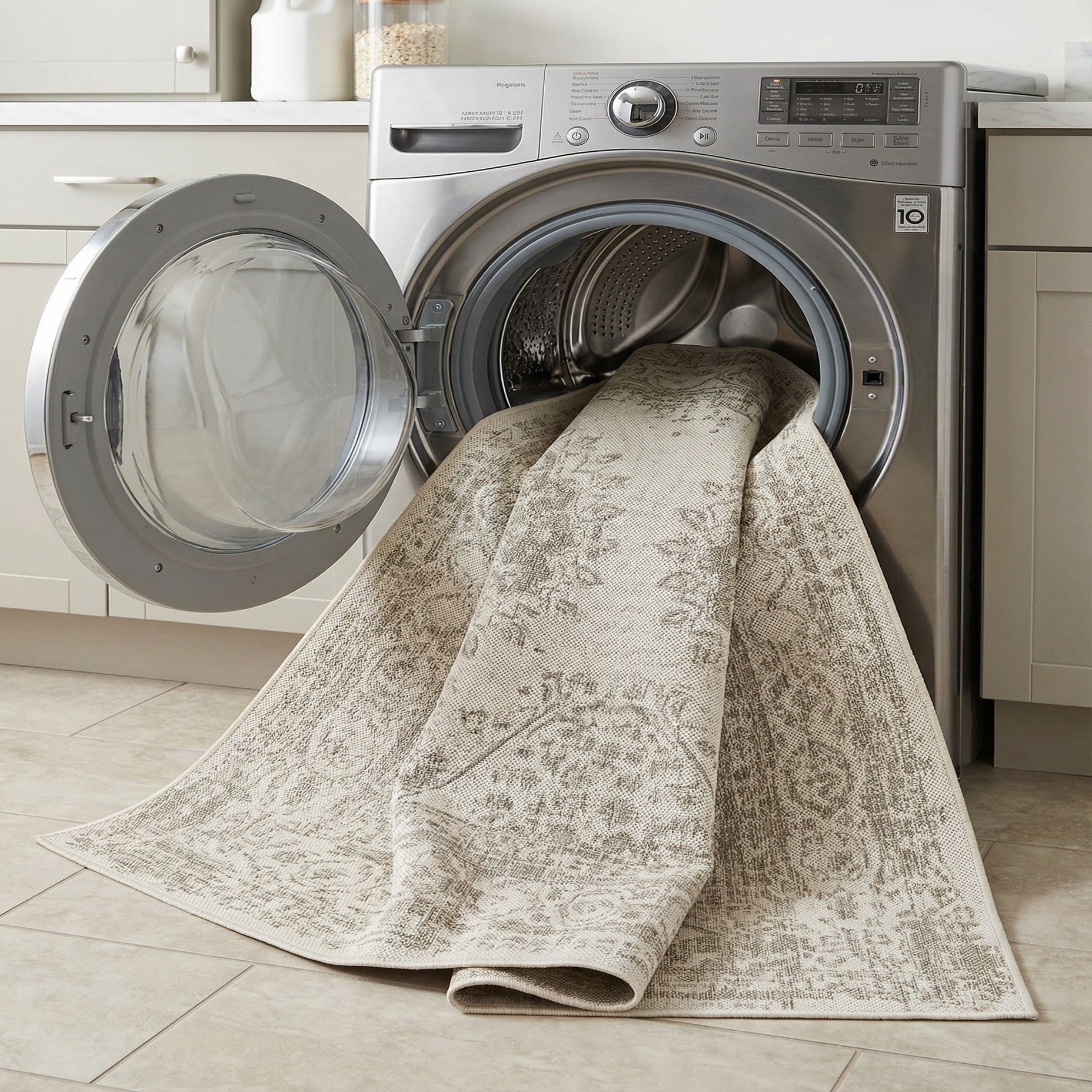 5' 3 x 7' Washable Traditional Indoor / Outdoor Rug