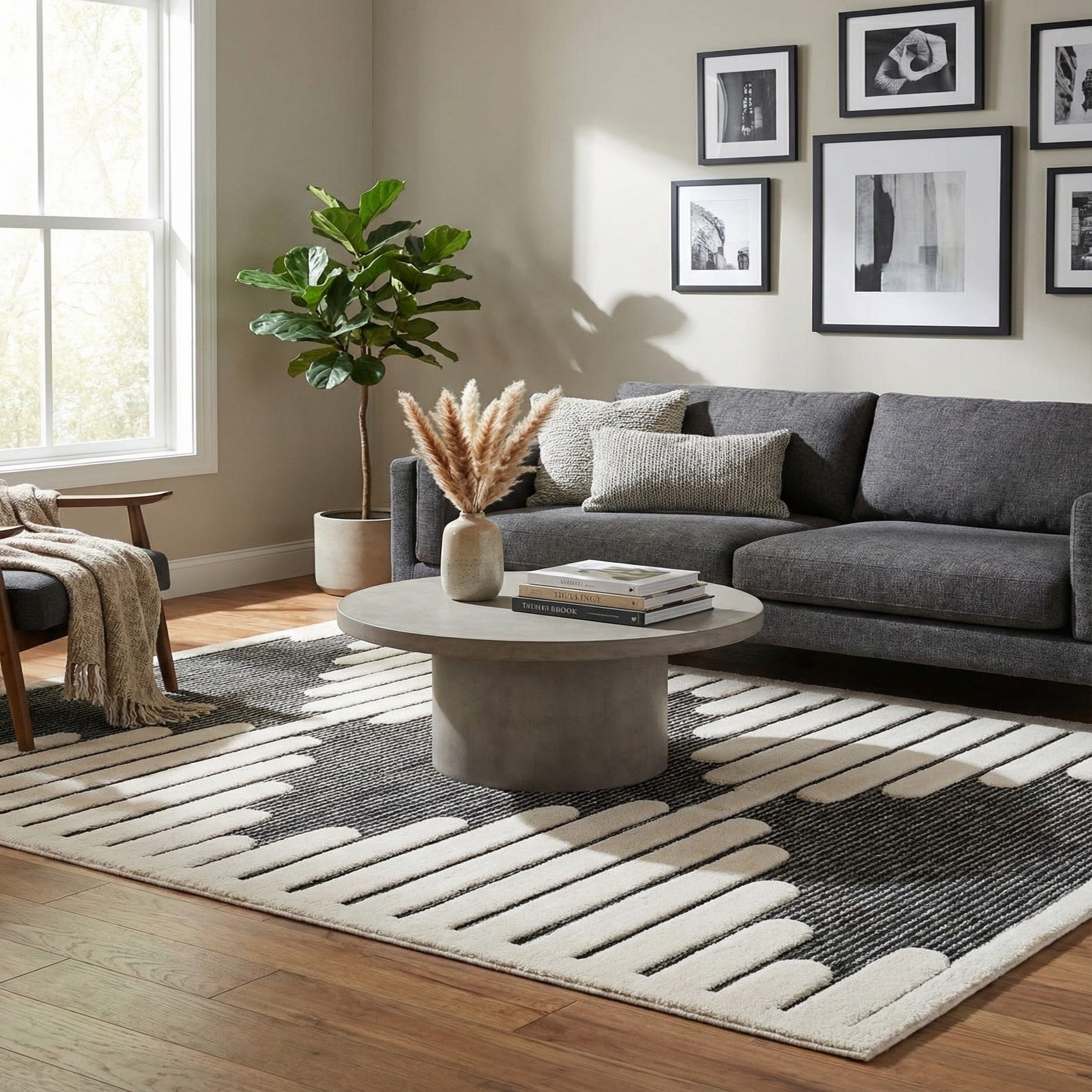 Primary color is Gray. Colors in this rug include: Gray, Ivory.