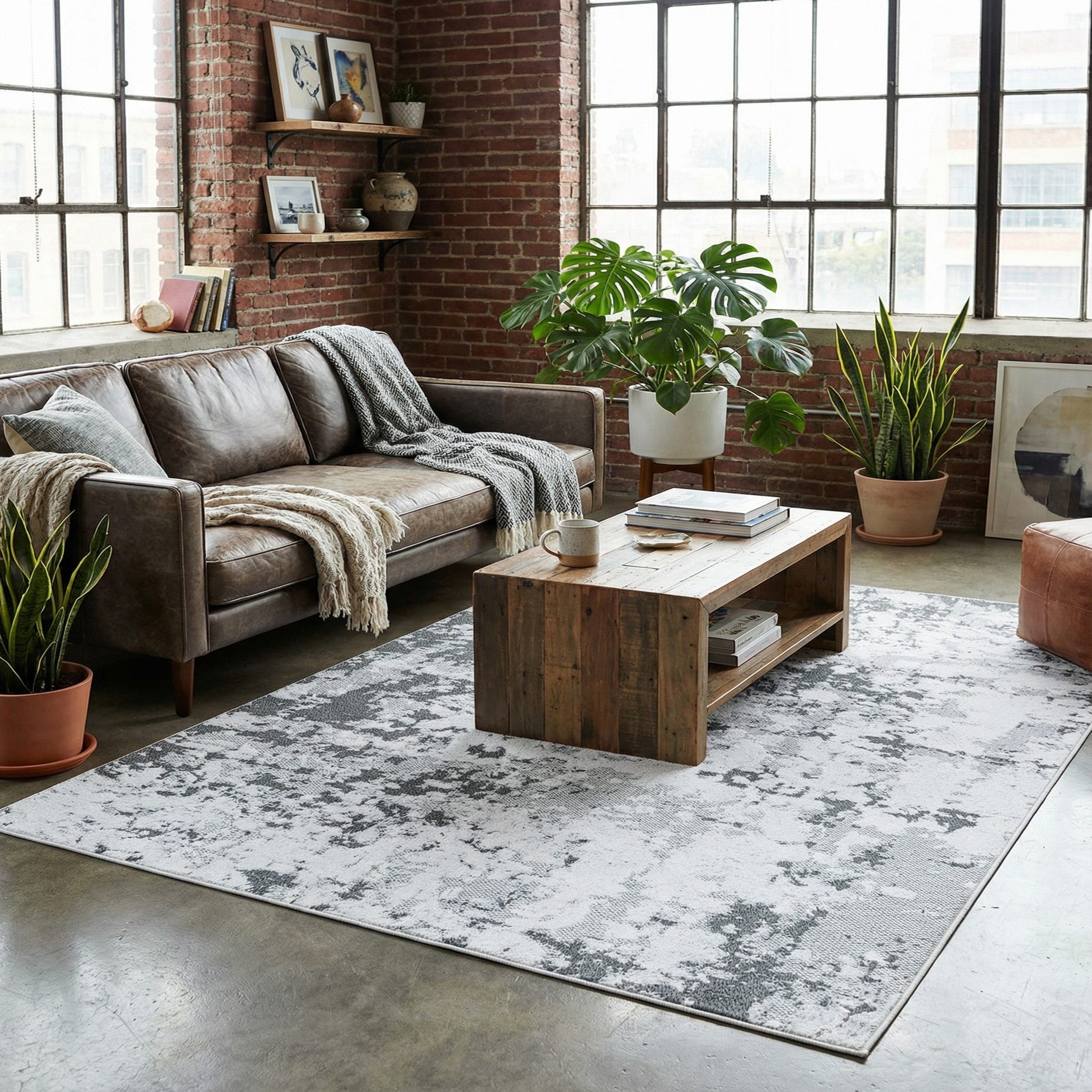 Primary color is Gray. Colors in this rug include: Gray, Ivory.