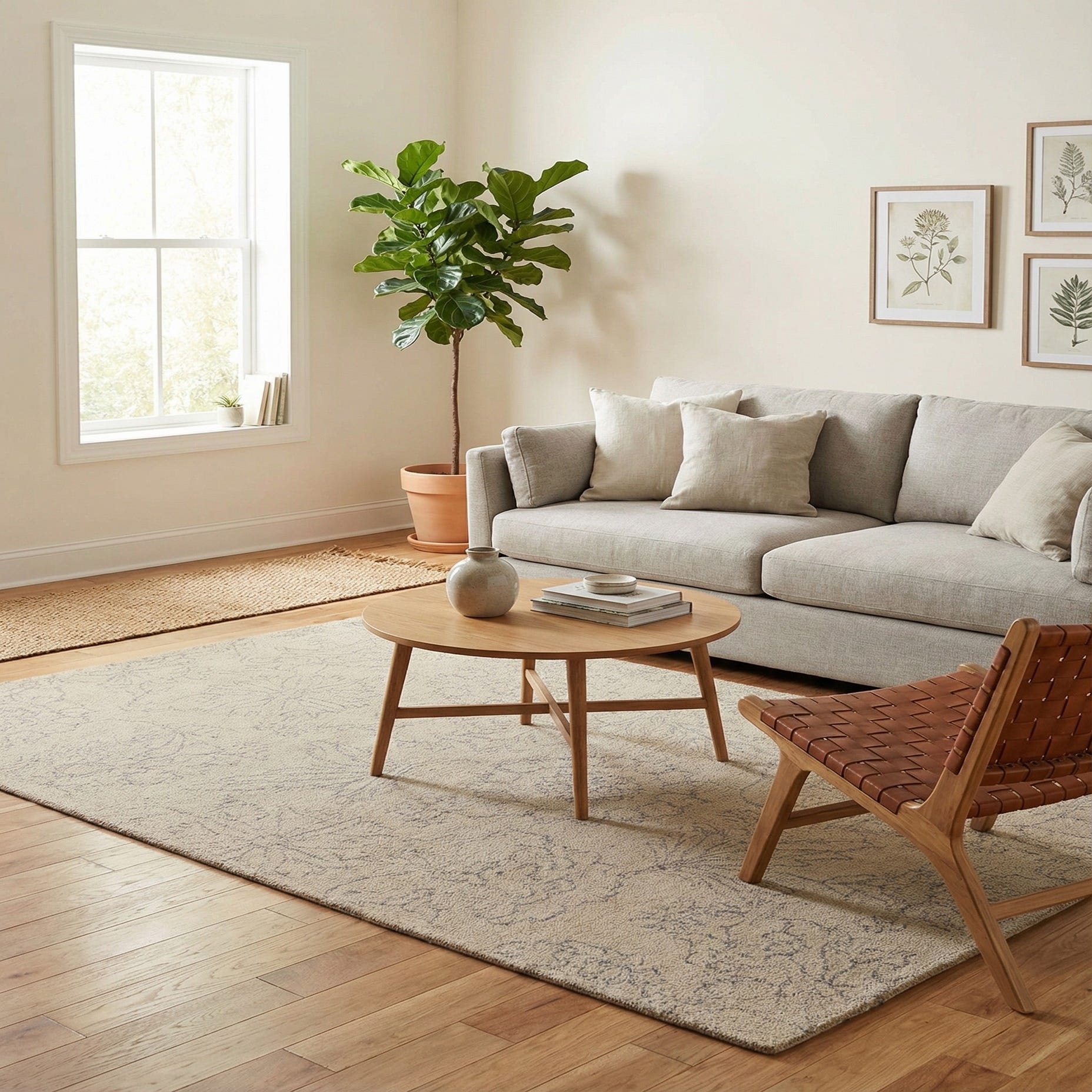 Primary color is Gray. Colors in this rug include: Gray, Navy Blue.