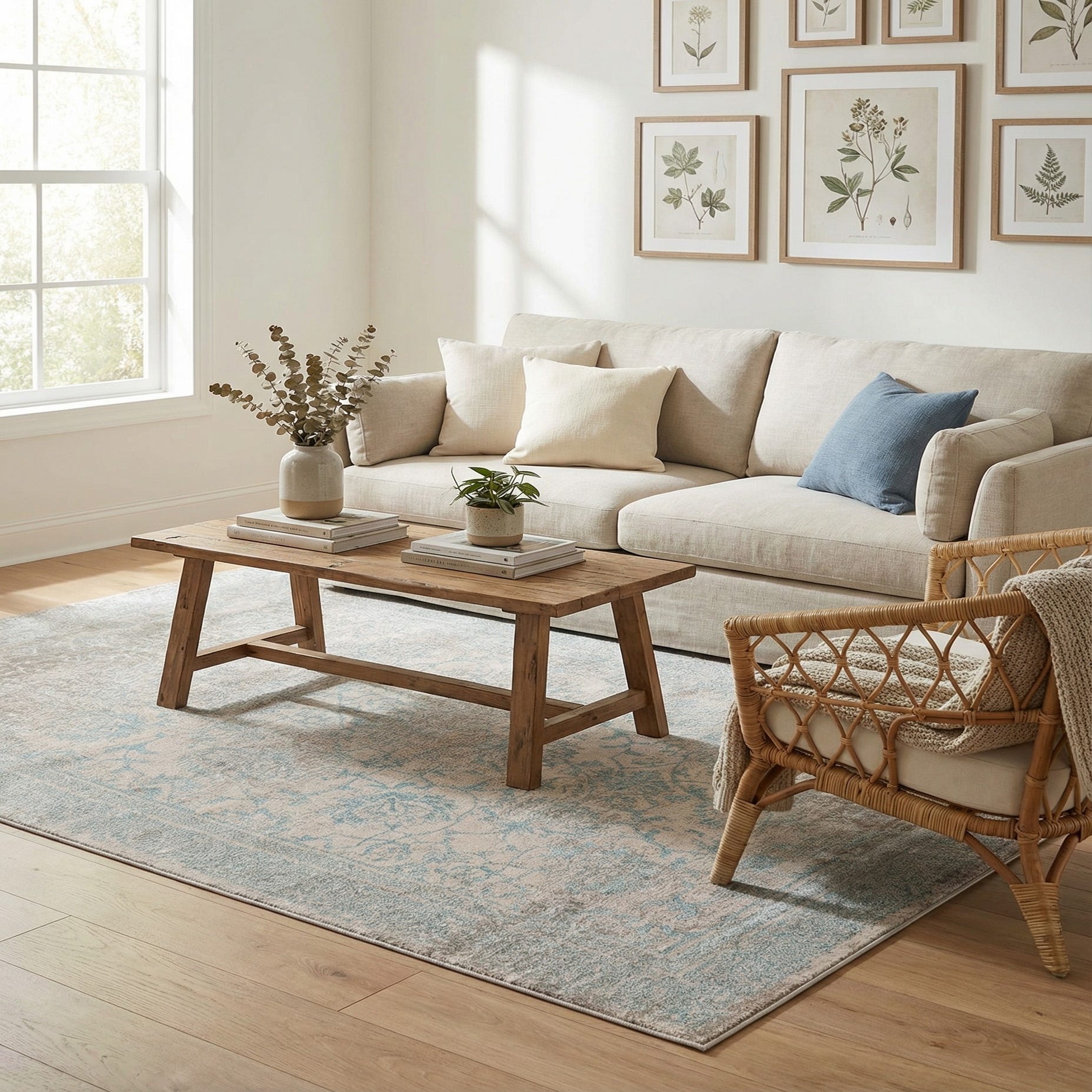 Primary color is Gray. Colors in this rug include: Gray, Ivory, Light Blue.