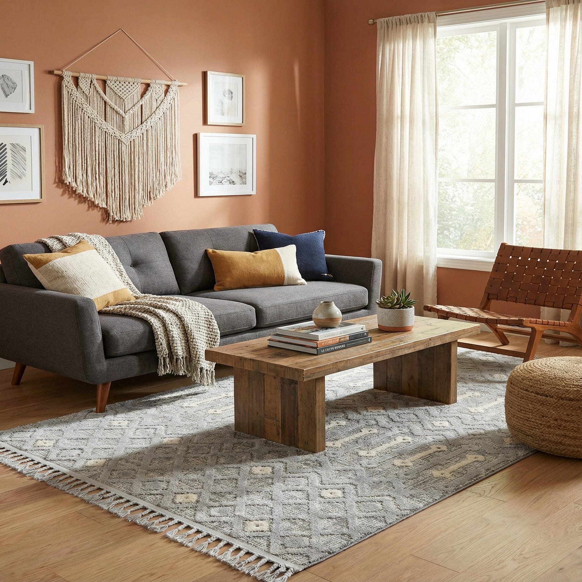 Primary color is Gray. Colors in this rug include: Gray, Beige.