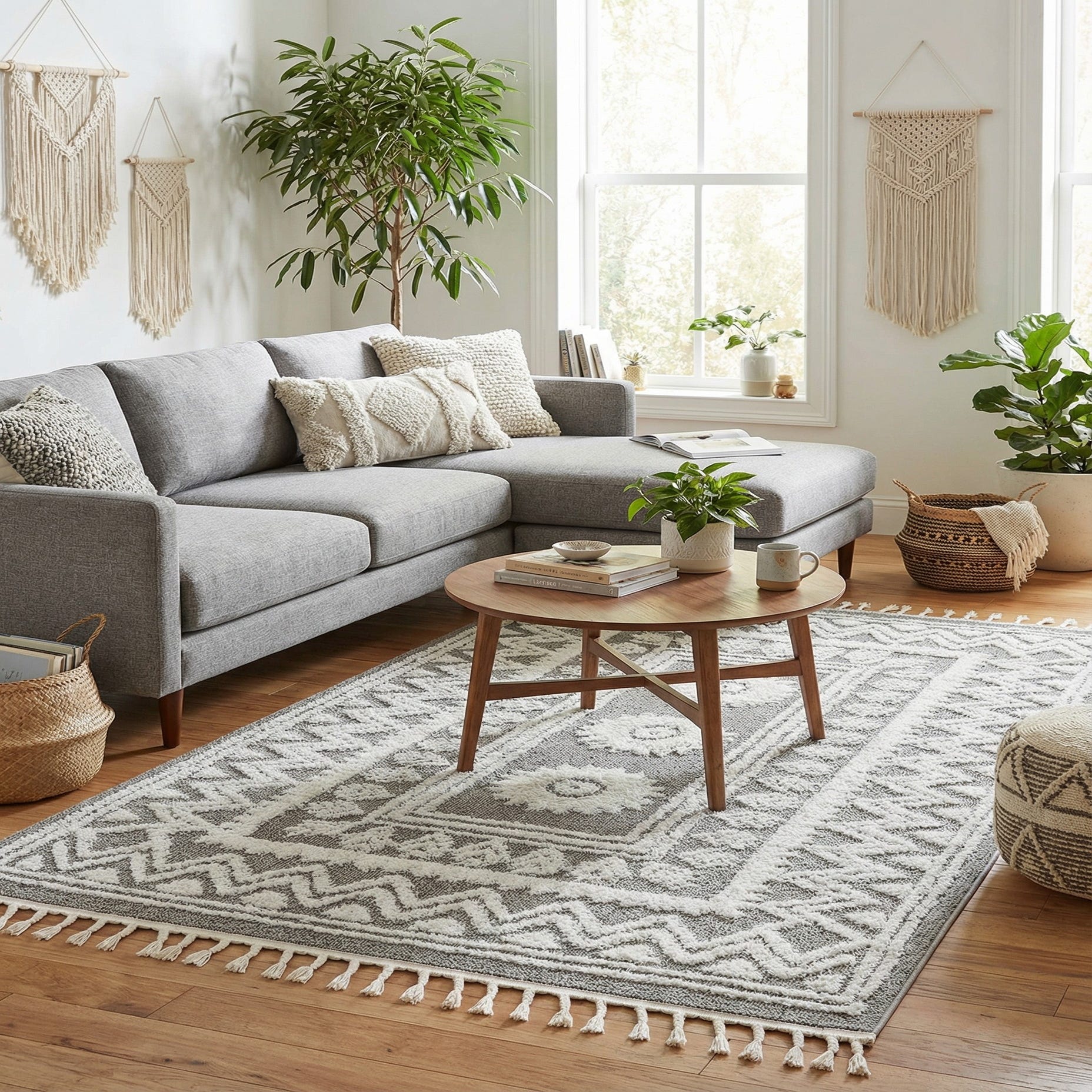 Primary color is Gray. Colors in this rug include: Gray, Ivory.