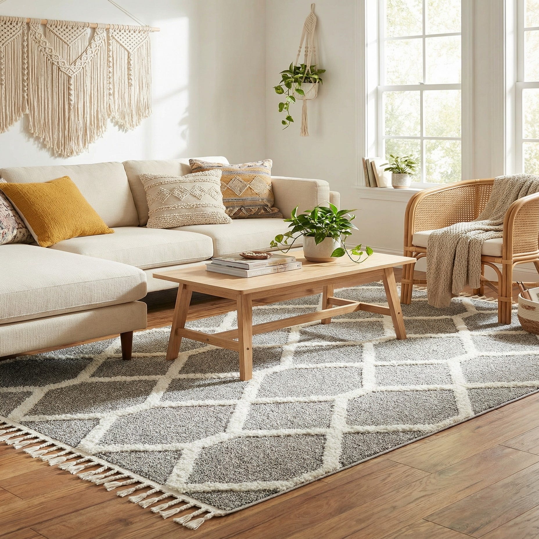 Primary color is Gray. Colors in this rug include: Gray, Ivory.