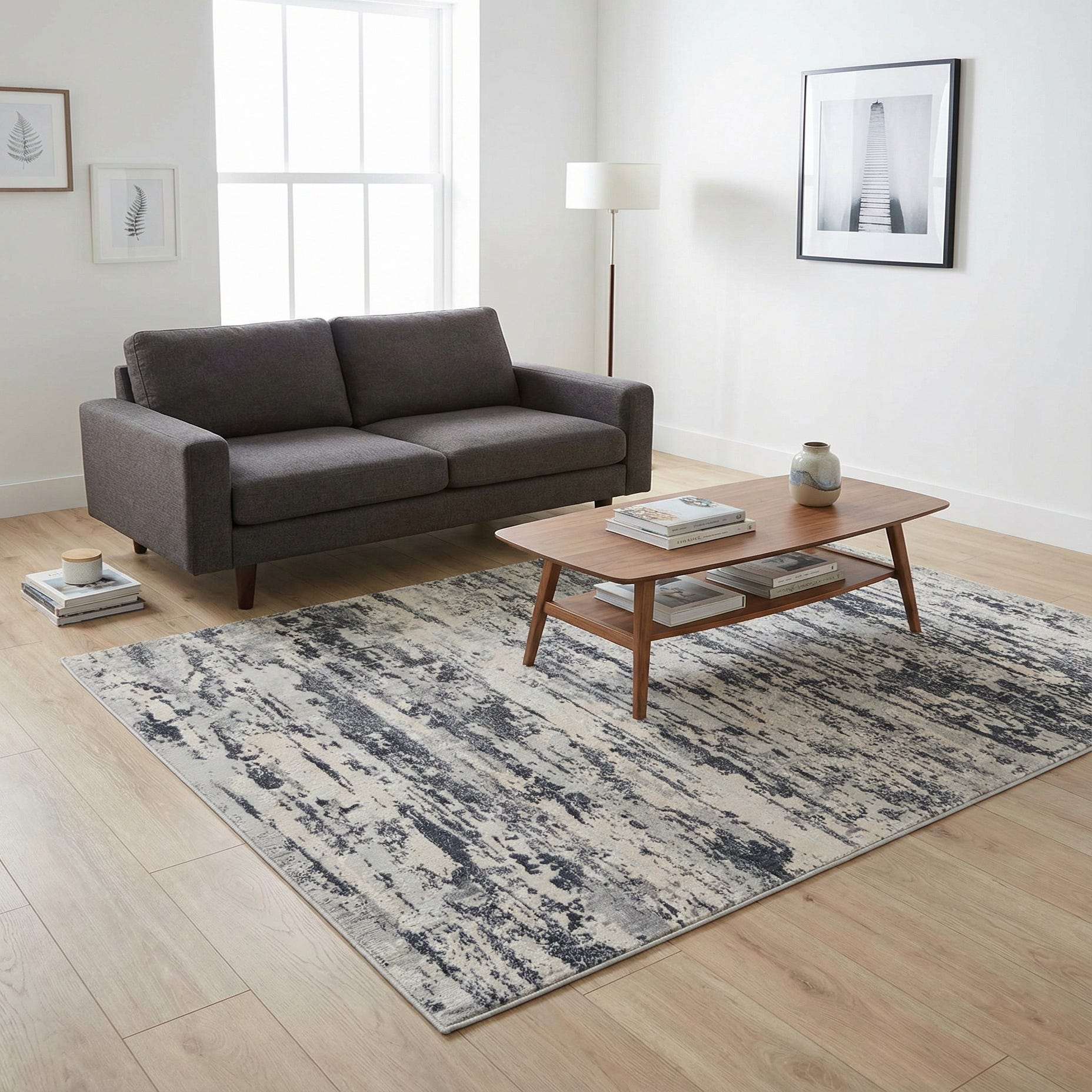 Primary color is Gray. Colors in this rug include: Gray, Ivory.