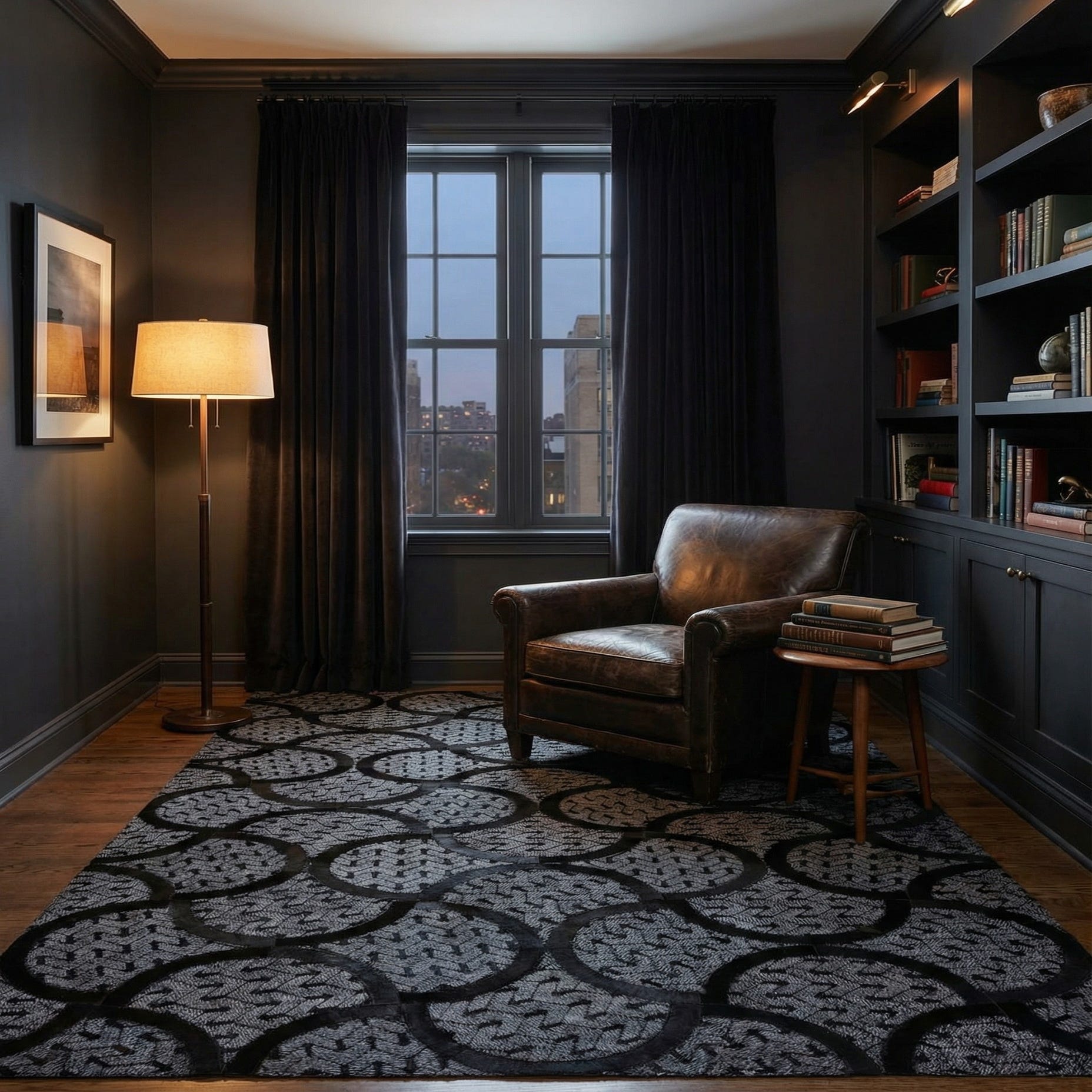 Primary color is Gray. Colors in this rug include: Gray, Black, Brown.