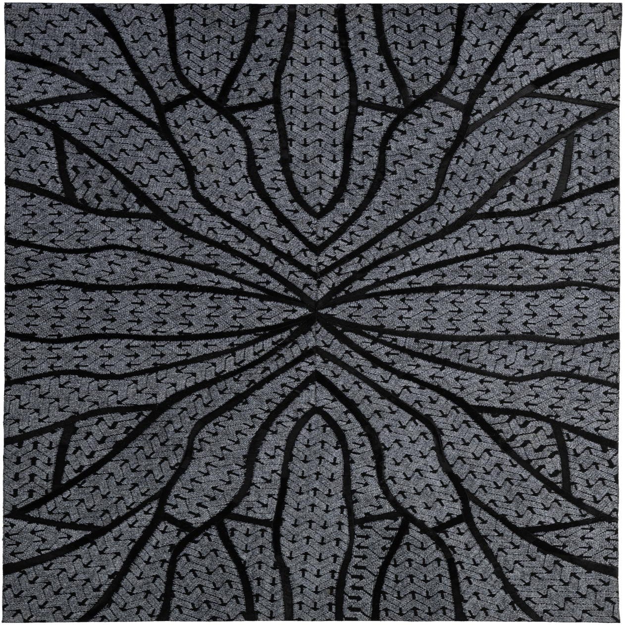 Primary color is Gray. Colors in this rug include: Gray, Black.