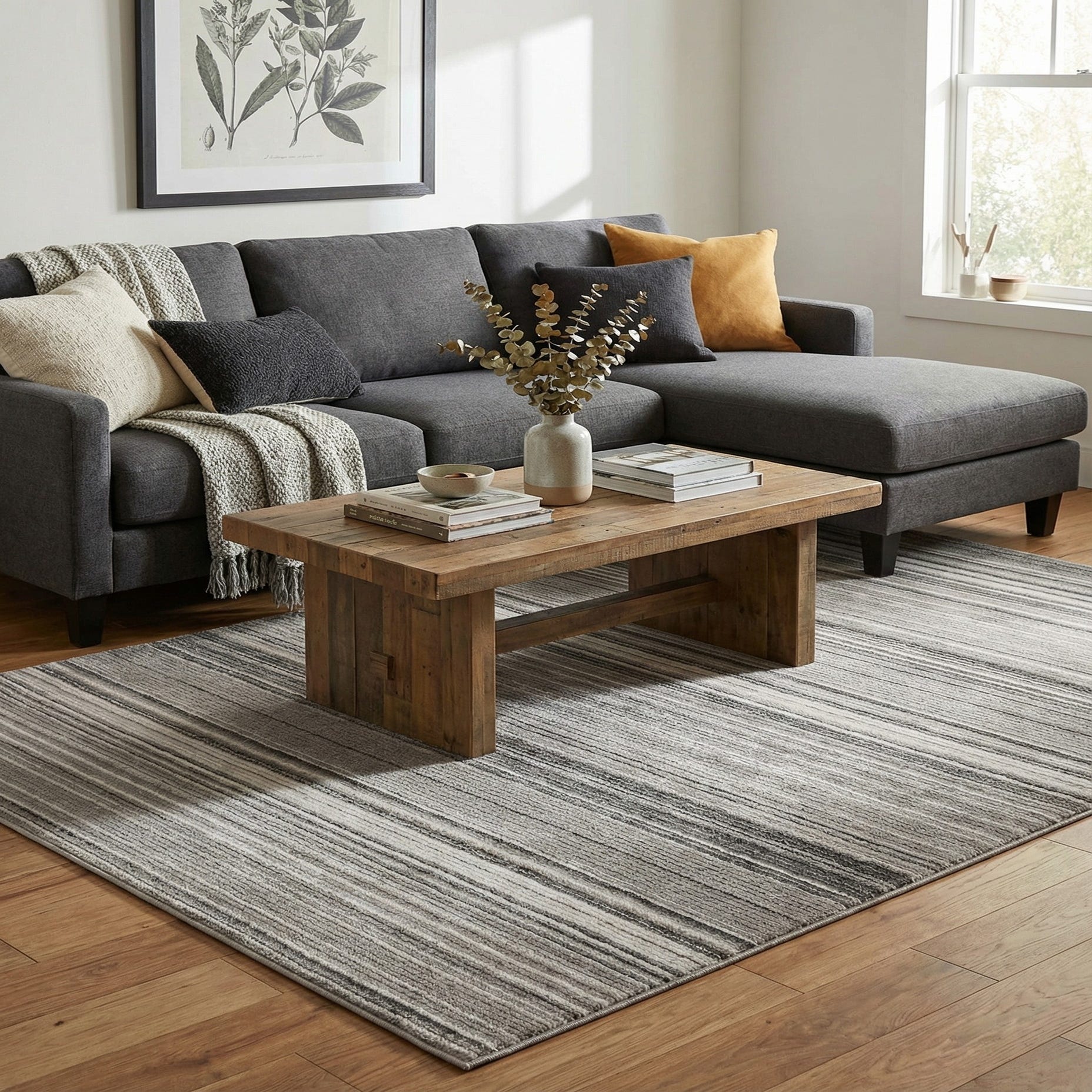 Primary color is Gray. Colors in this rug include: Gray, Ivory.