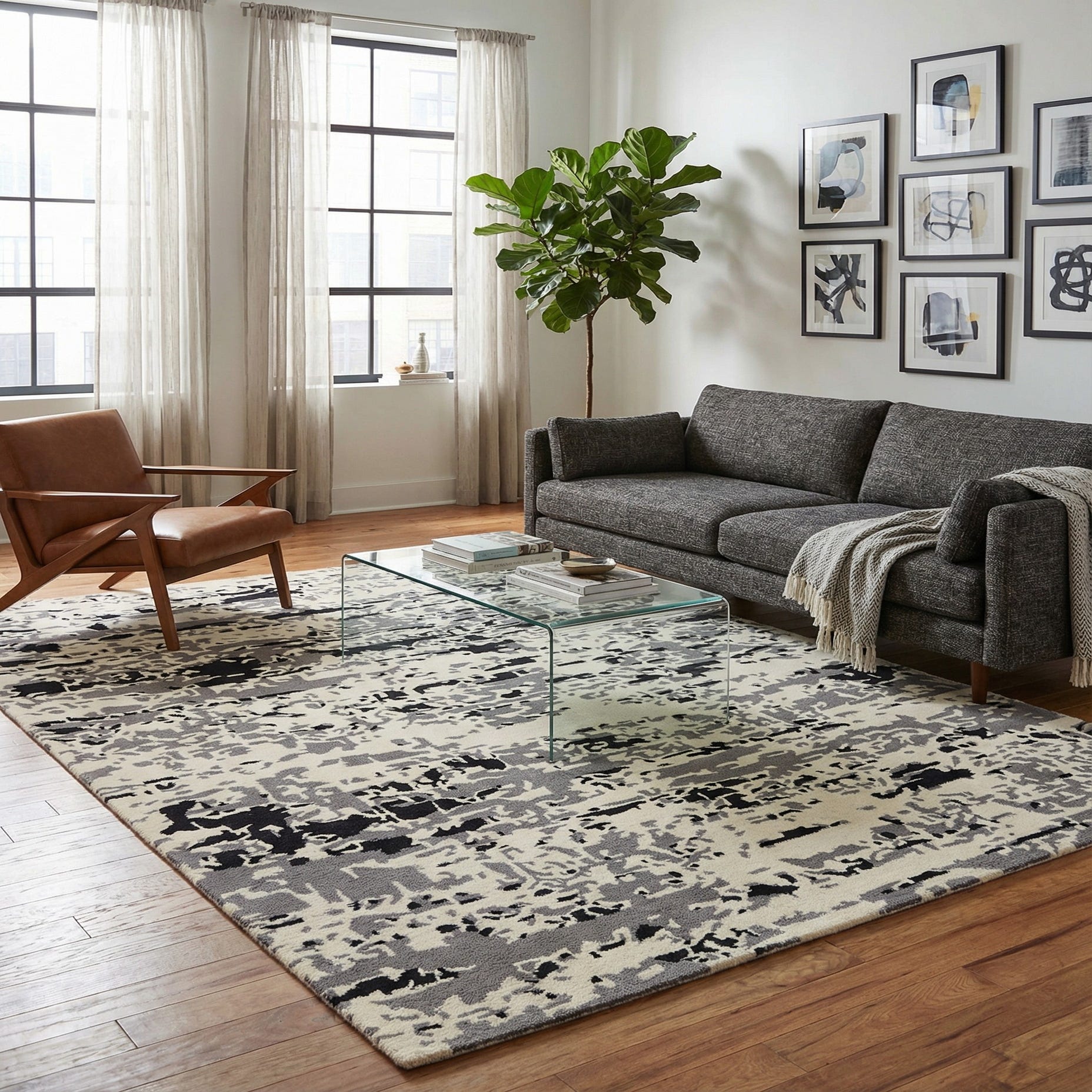 Primary color is Gray. Colors in this rug include: Gray, Ivory, Black.