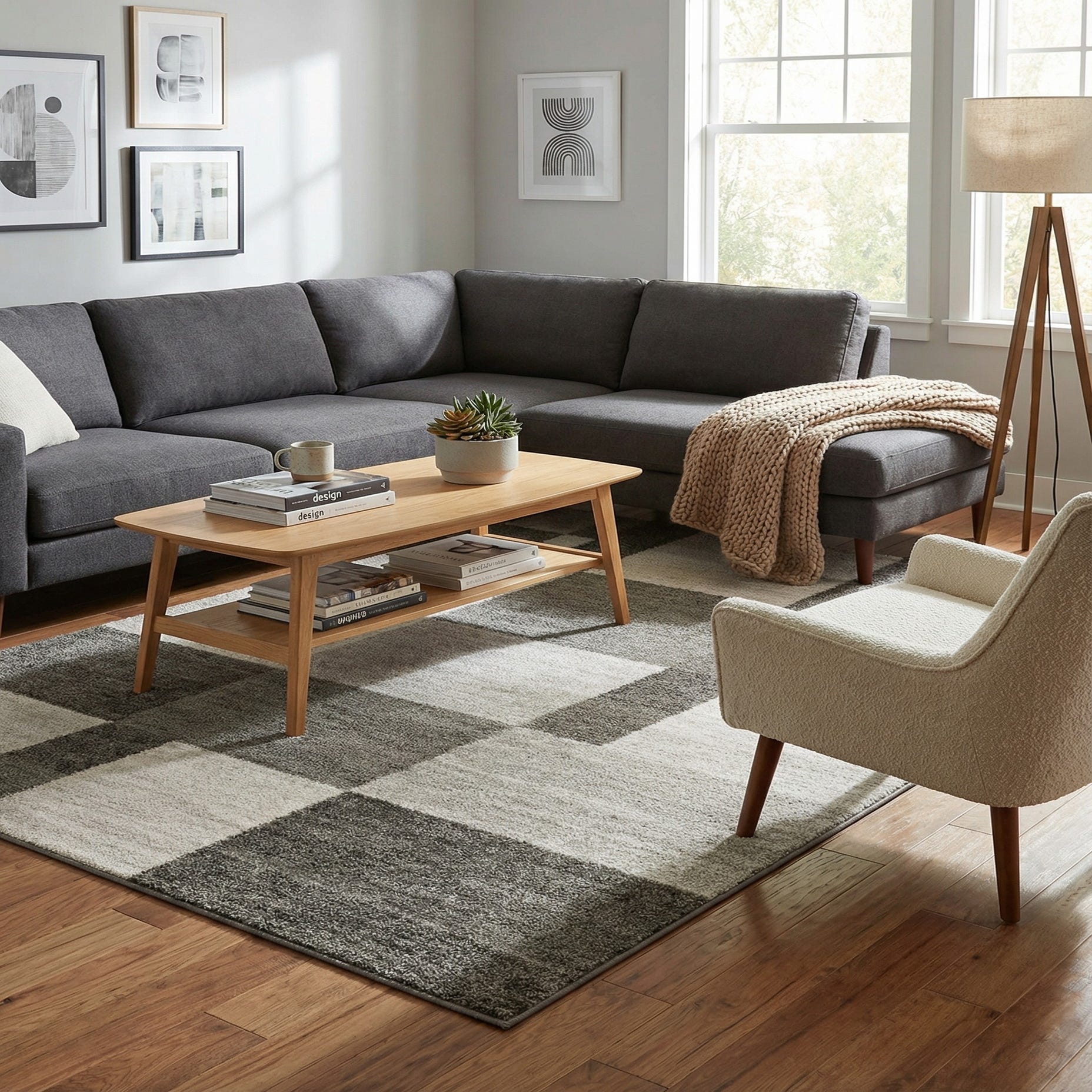 Primary color is Gray. Colors in this rug include: Gray, Ivory, Black.