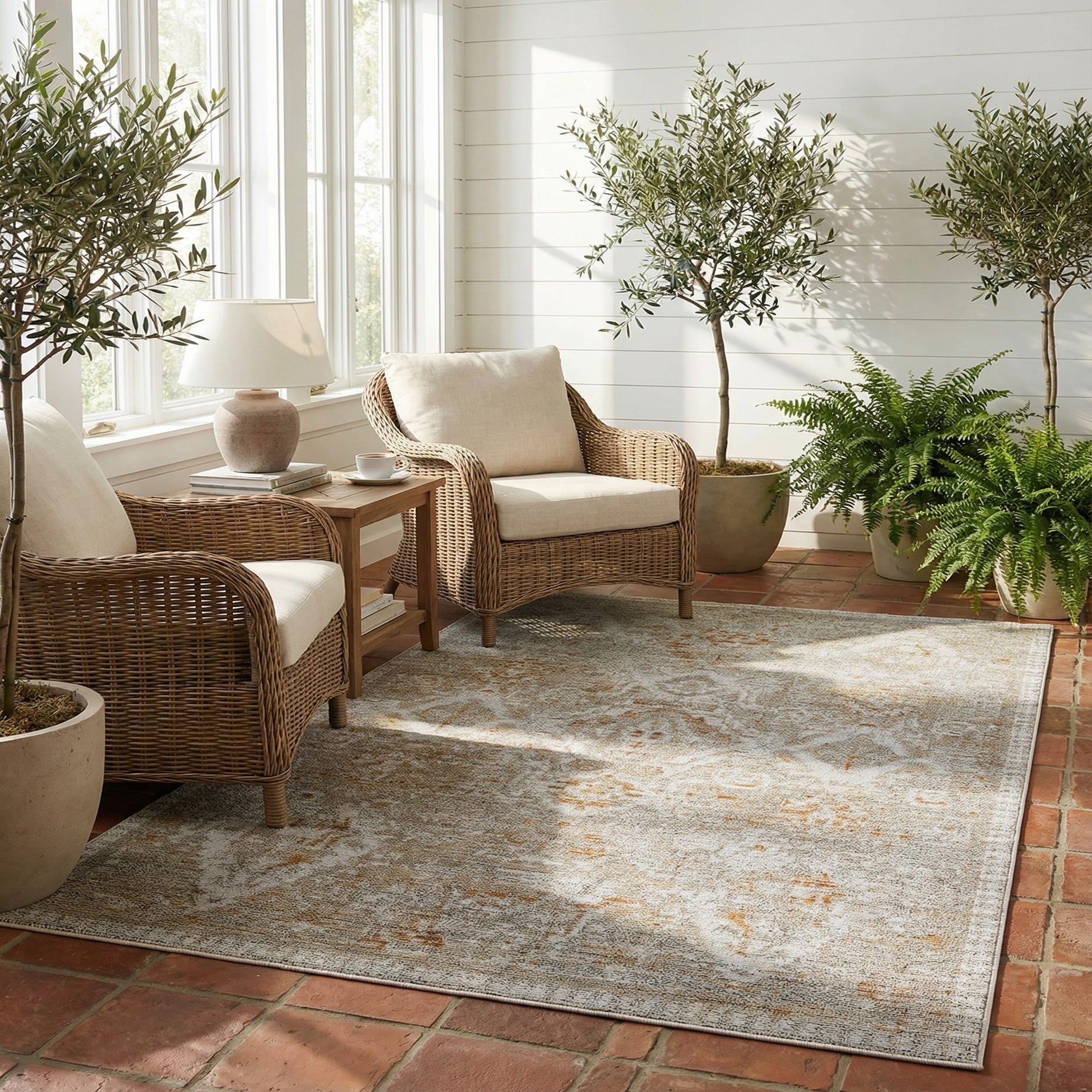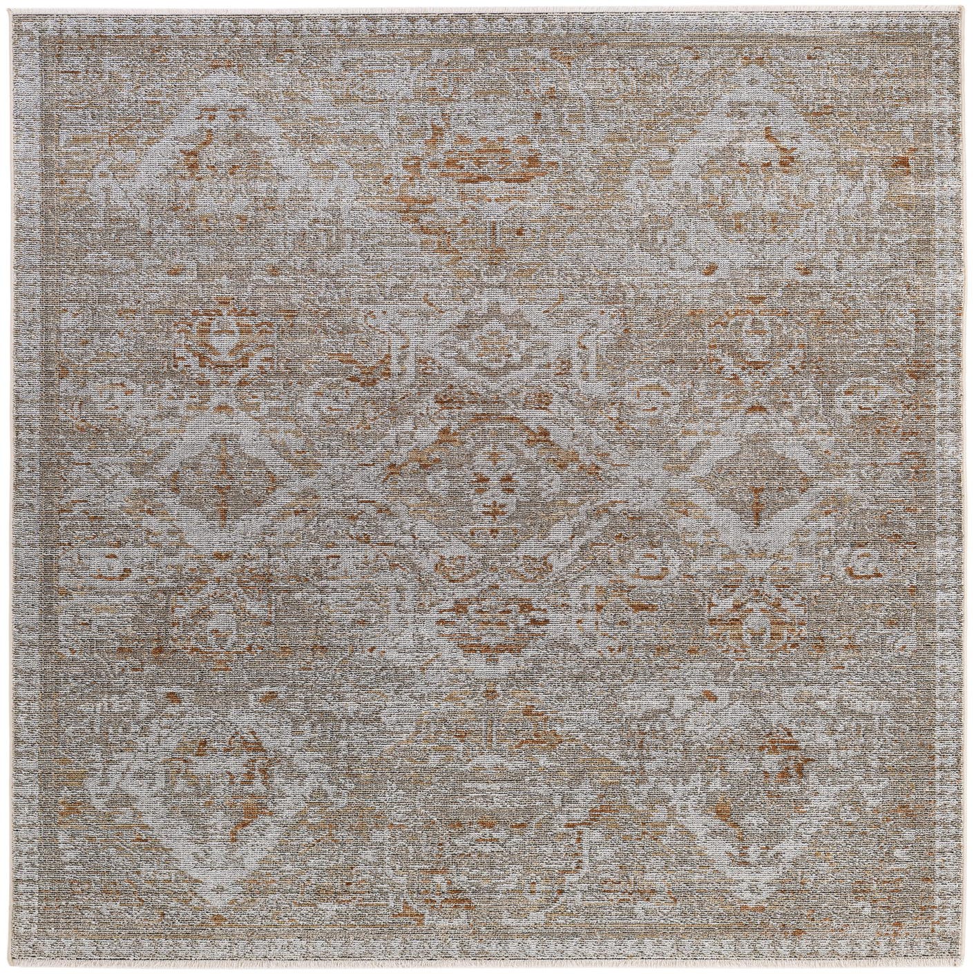 Primary color is Gray. Colors in this rug include: Gray, Gold, Ivory.