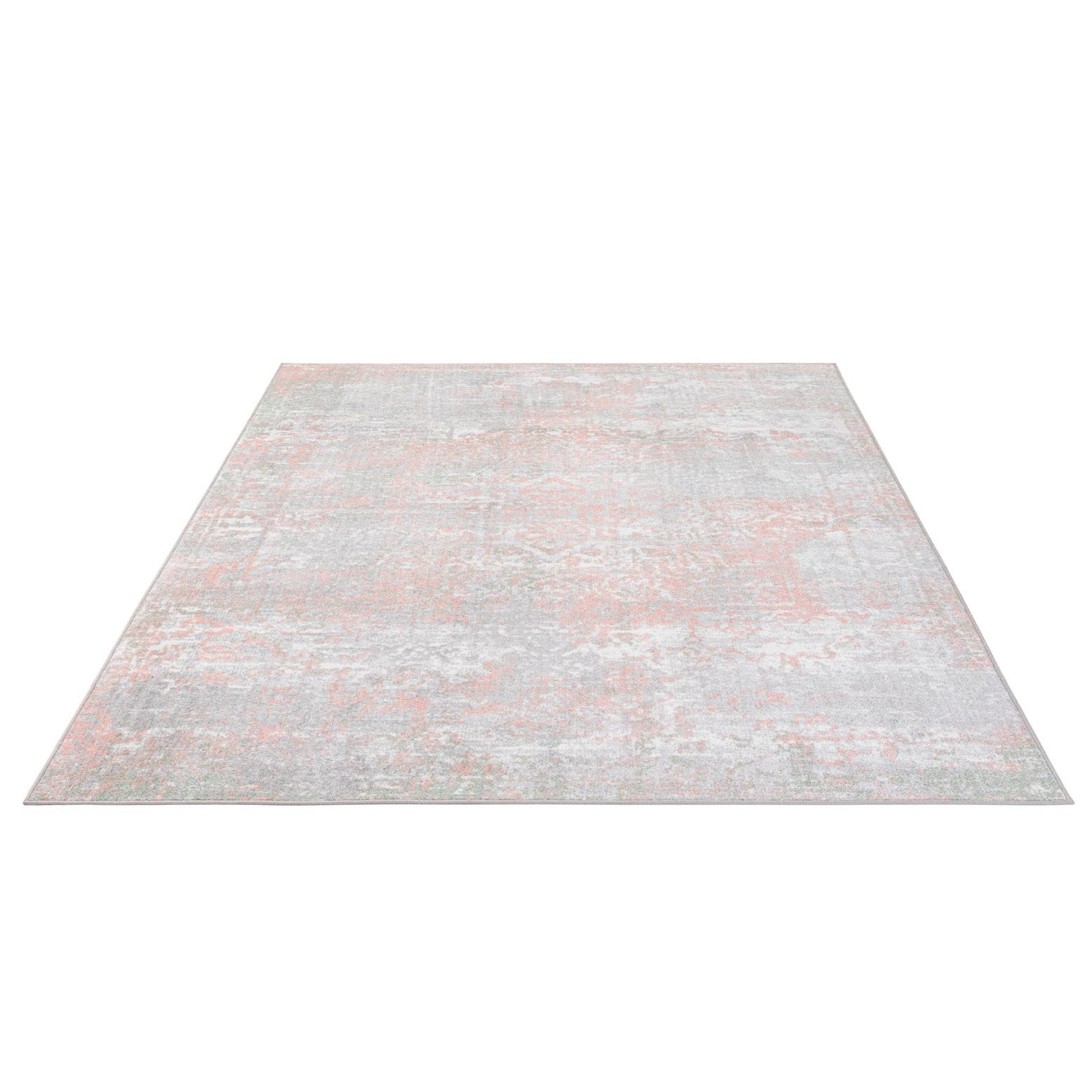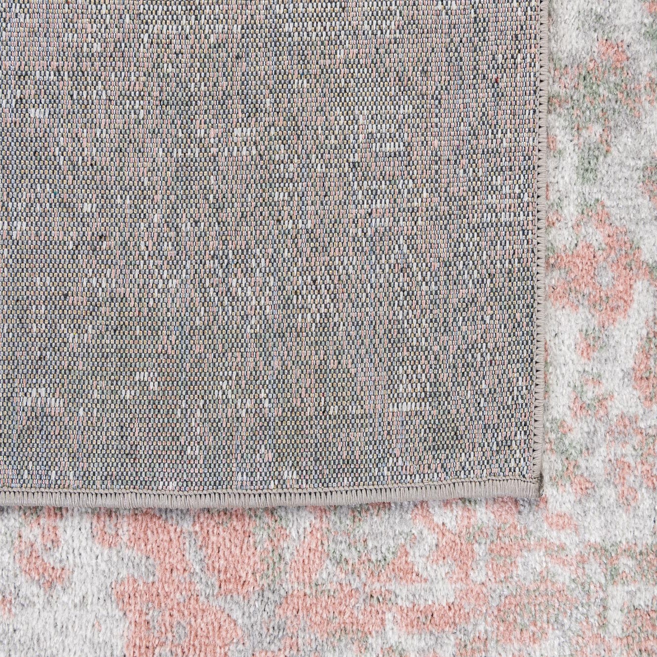 Primary color is Gray. Colors in this rug include: Gray, Ivory, Pink.