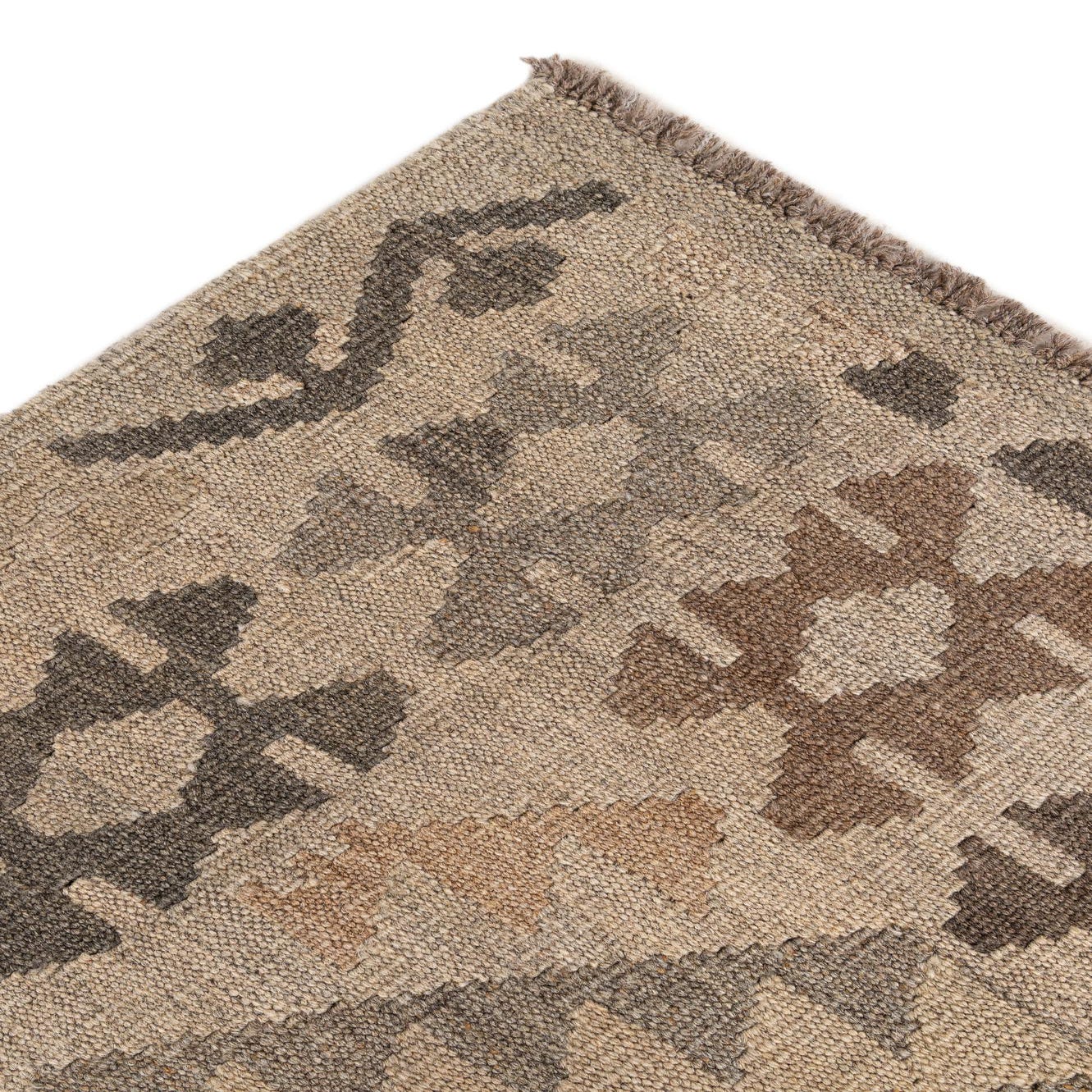 Primary color is Gray. Colors in this rug include: Gray, Beige, Brown, Light Brown.