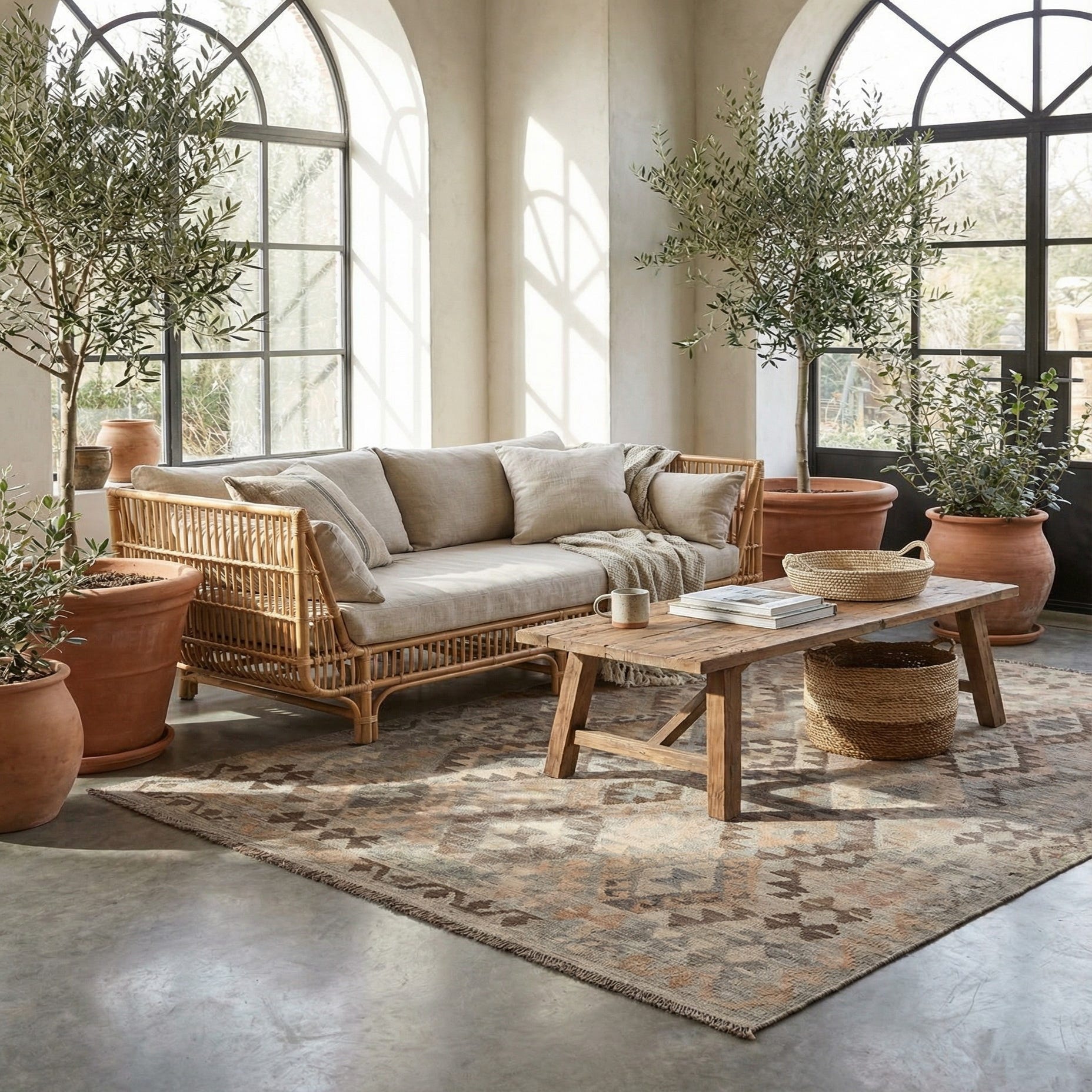 5' 7 x 8' 2 Hand Woven Kilim Maymana Wool Rug