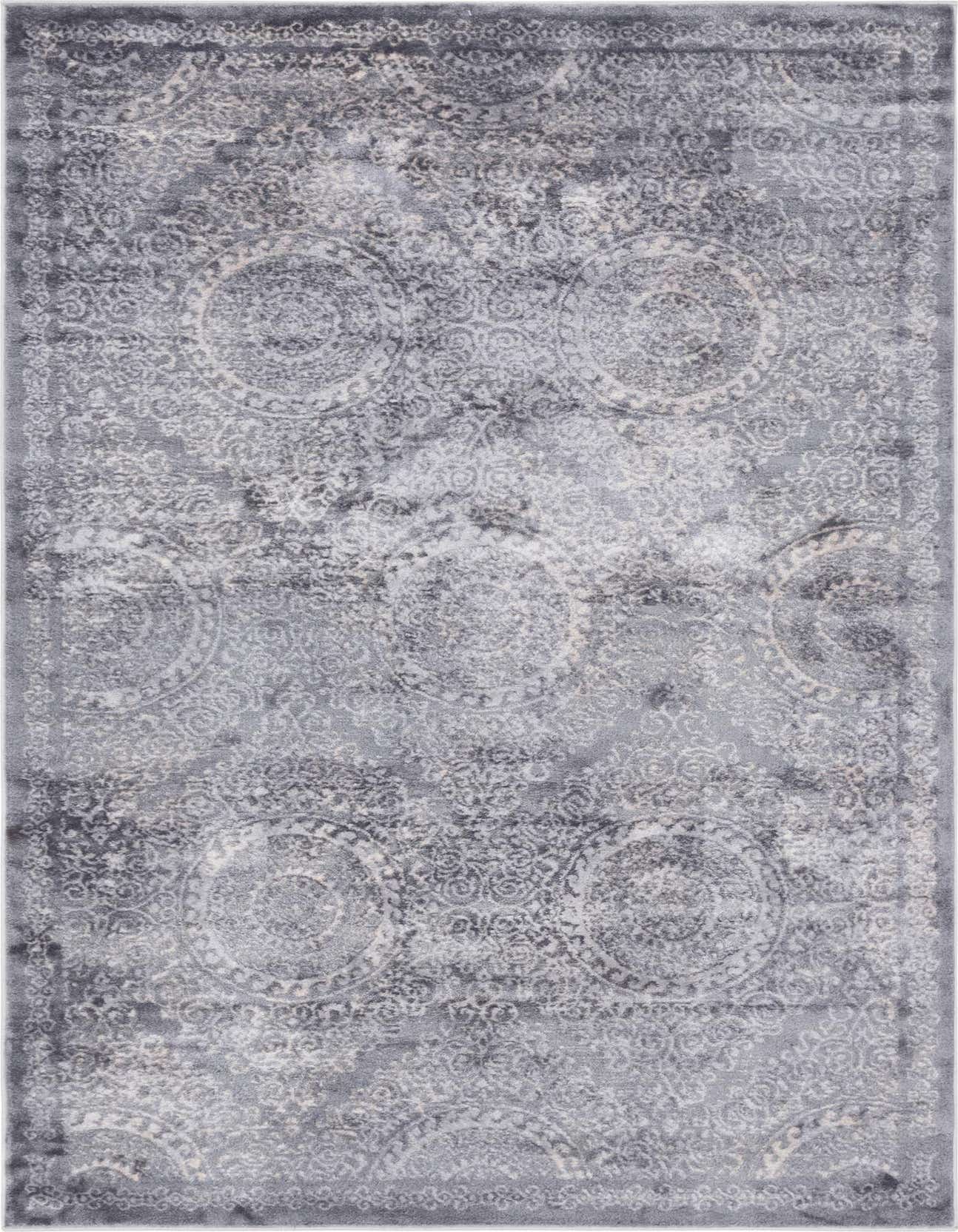 Primary color is Gray. Colors in this rug include: Gray, Ivory.