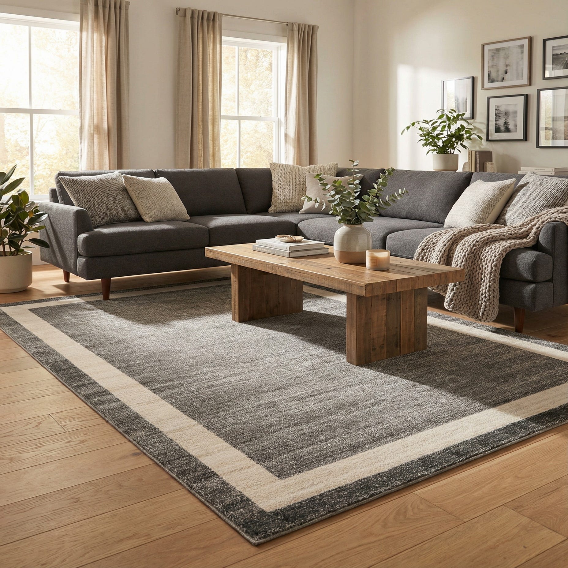Primary color is Gray. Colors in this rug include: Gray, Ivory.