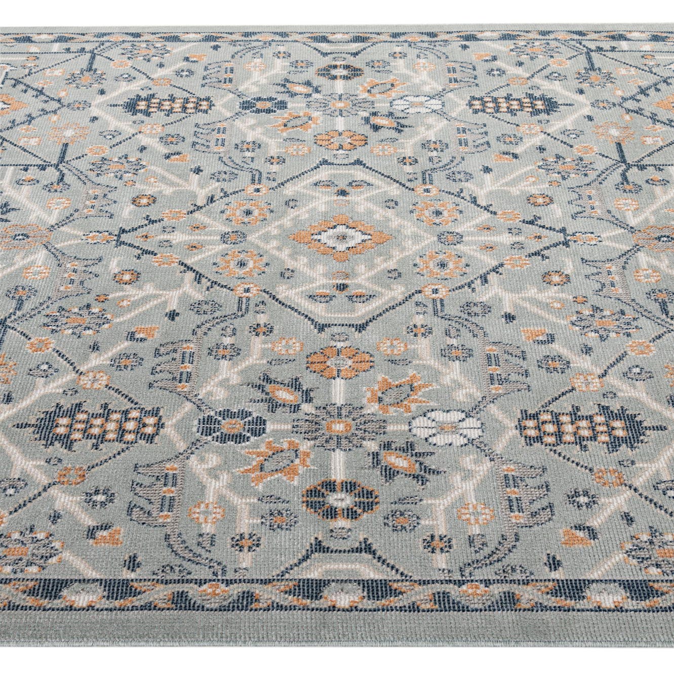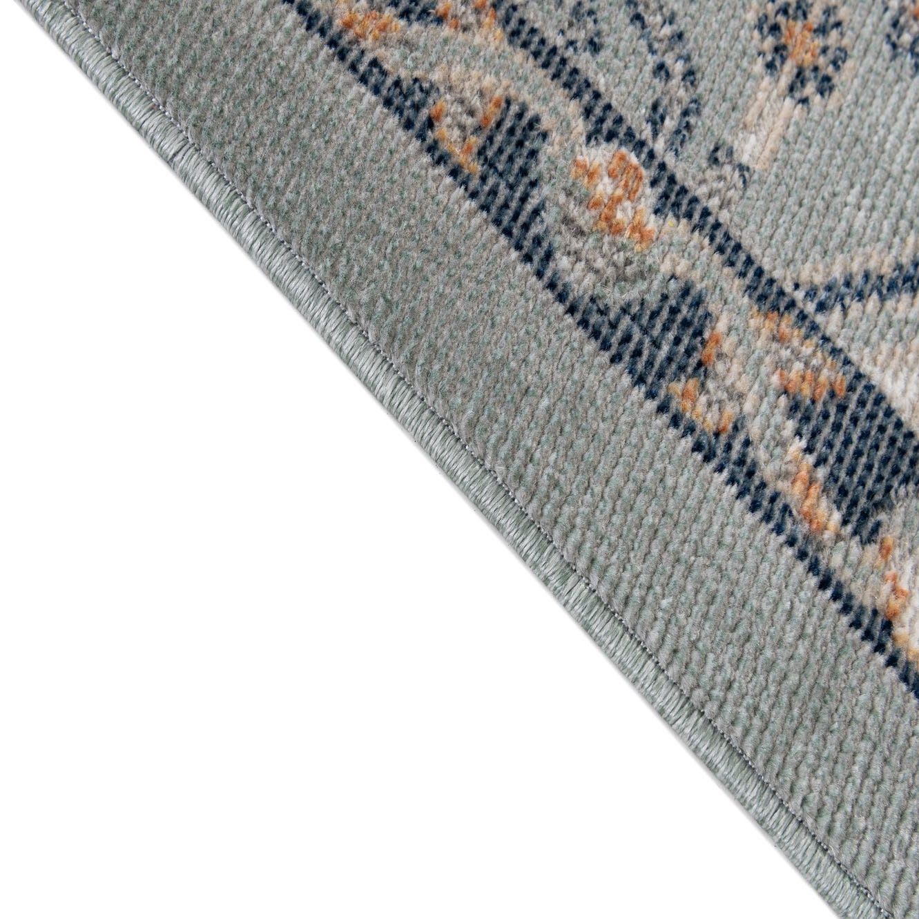 Primary color is Gray. Colors in this rug include: Gray, Beige, Ivory, Navy Blue.