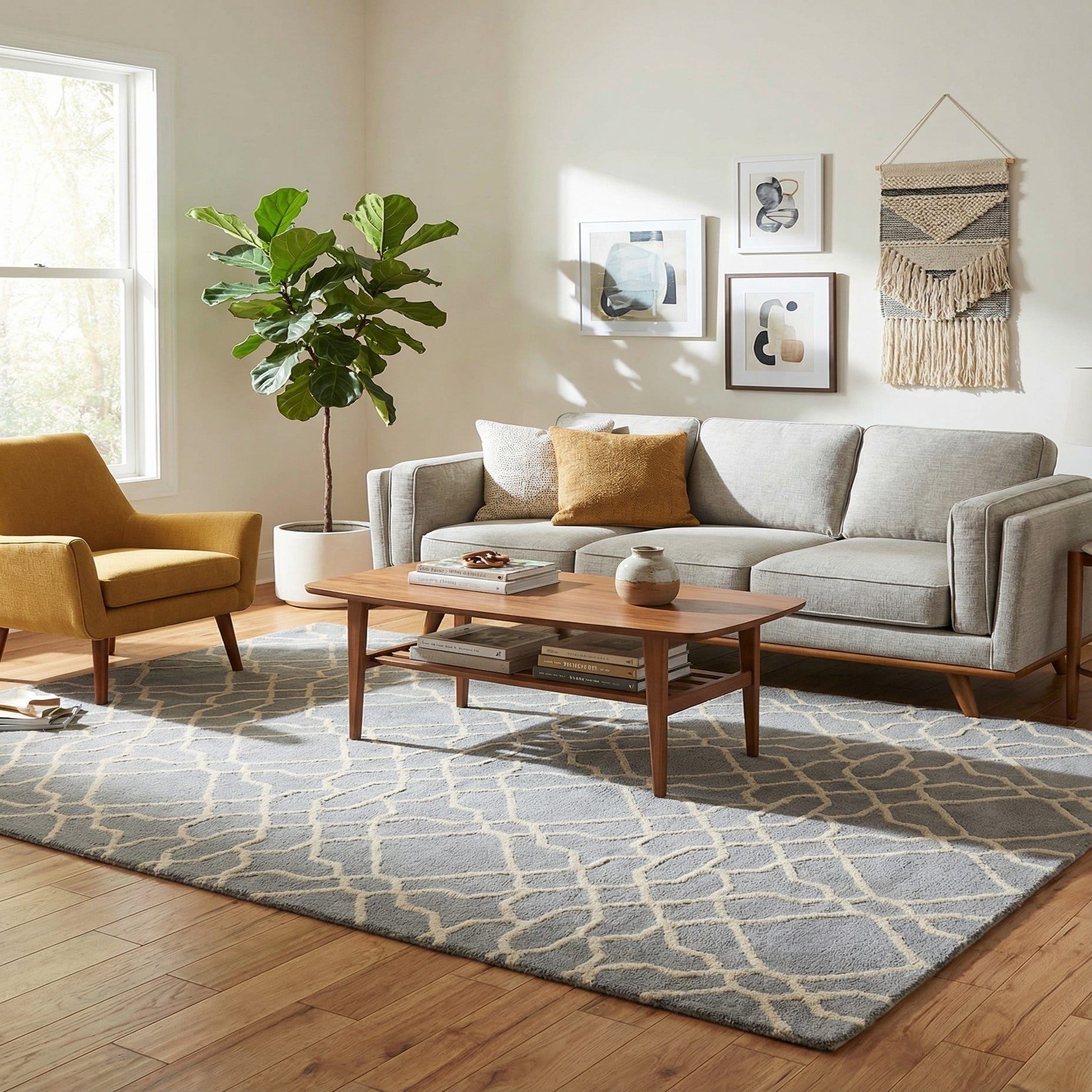 Primary color is Gray. Colors in this rug include: Gray, Ivory.