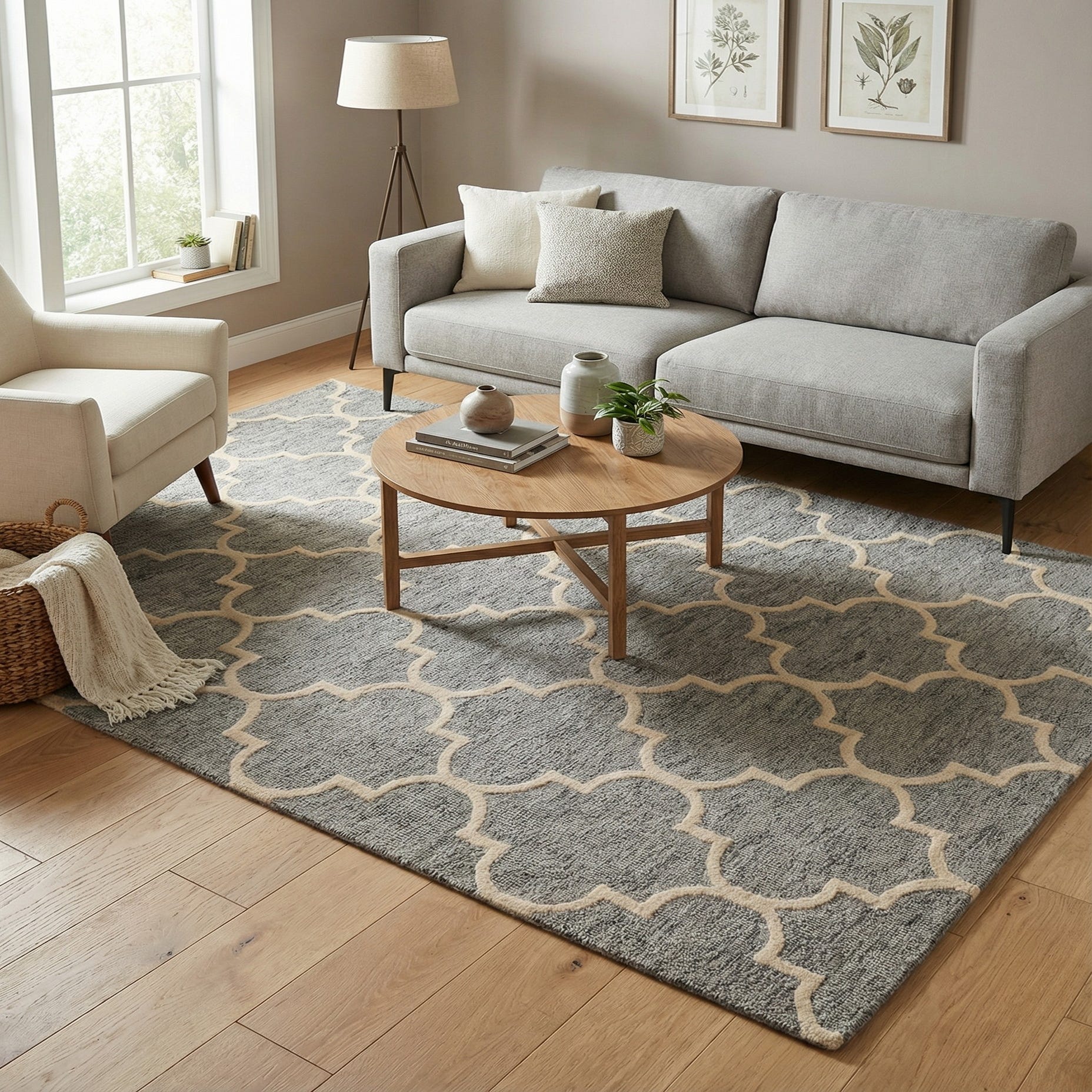 Primary color is Gray. Colors in this rug include: Gray, Ivory.