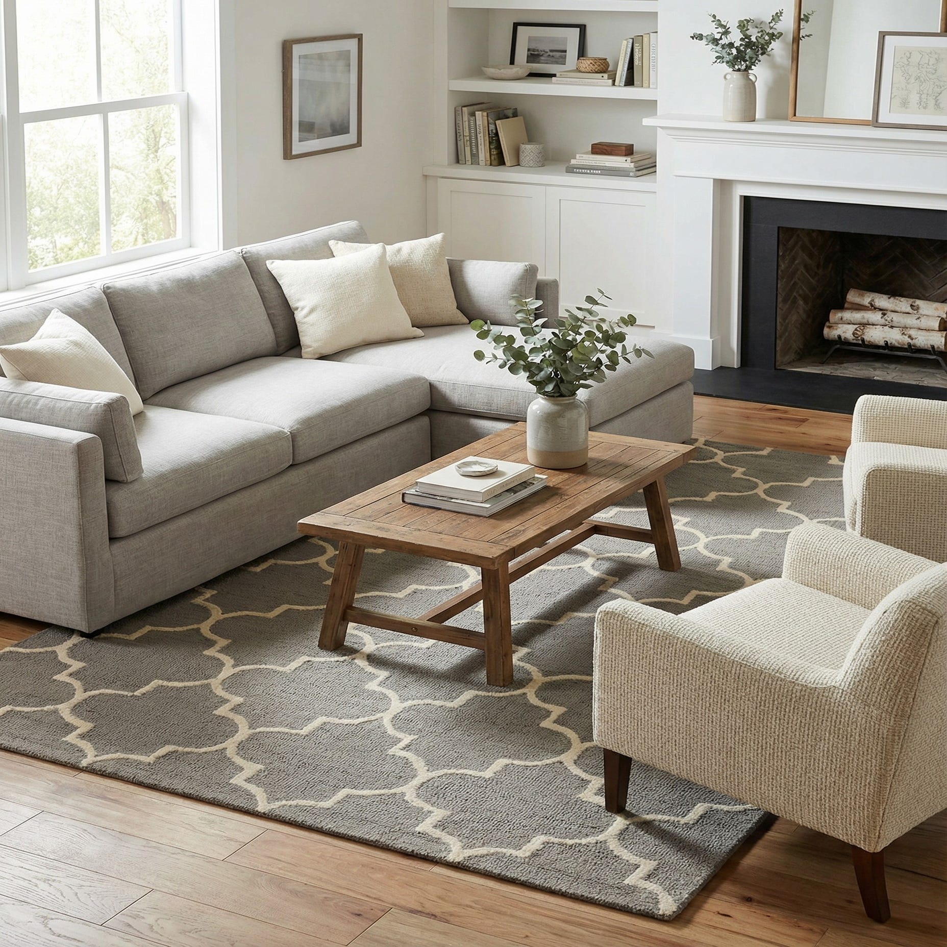 Primary color is Gray. Colors in this rug include: Gray, Ivory.