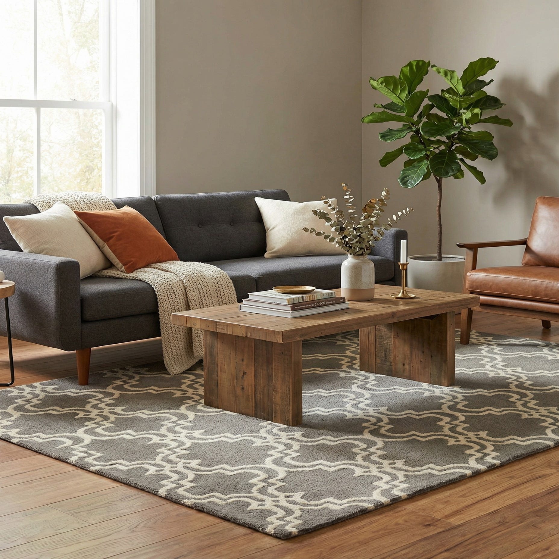 Primary color is Gray. Colors in this rug include: Gray, Ivory.