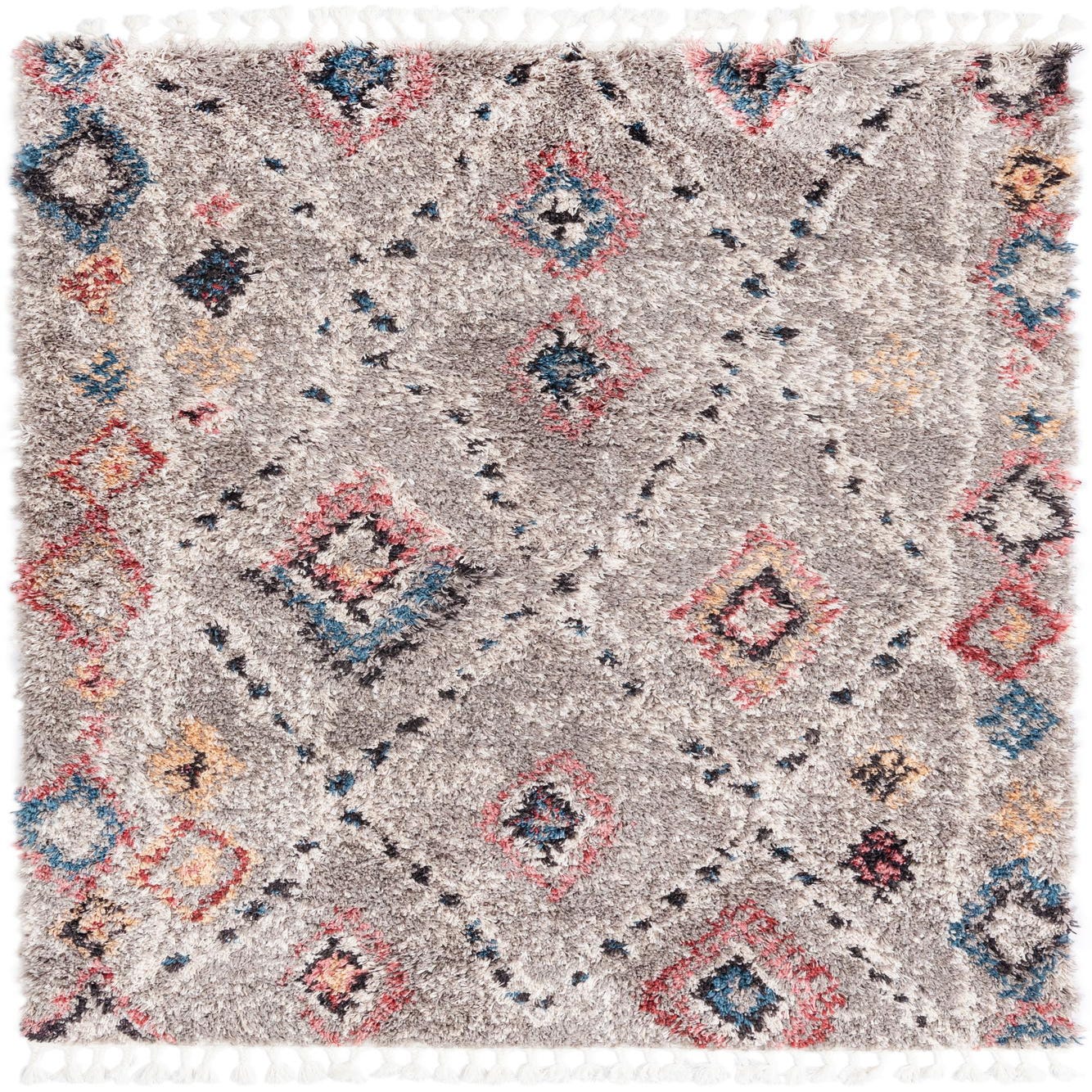 Primary color is Gray. Colors in this rug include: Gray, Ivory, Blue, Peach, Pink.