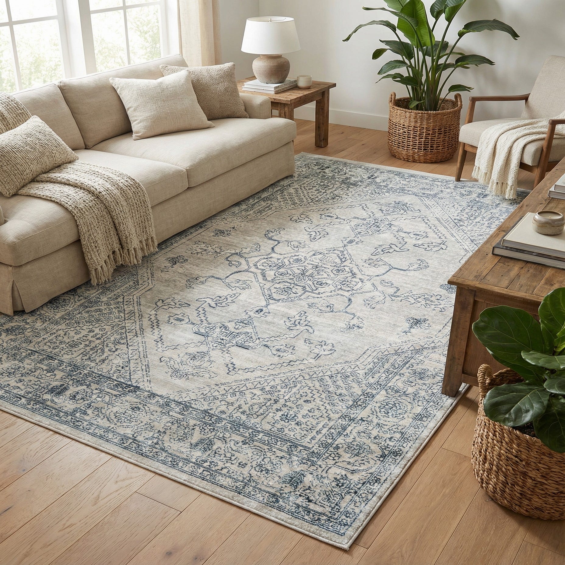 Primary color is Gray. Colors in this rug include: Gray, Ivory.