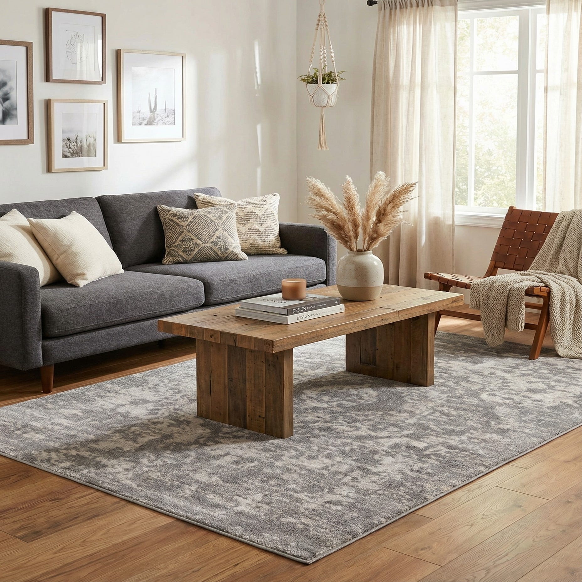Primary color is Gray. Colors in this rug include: Gray, Ivory.