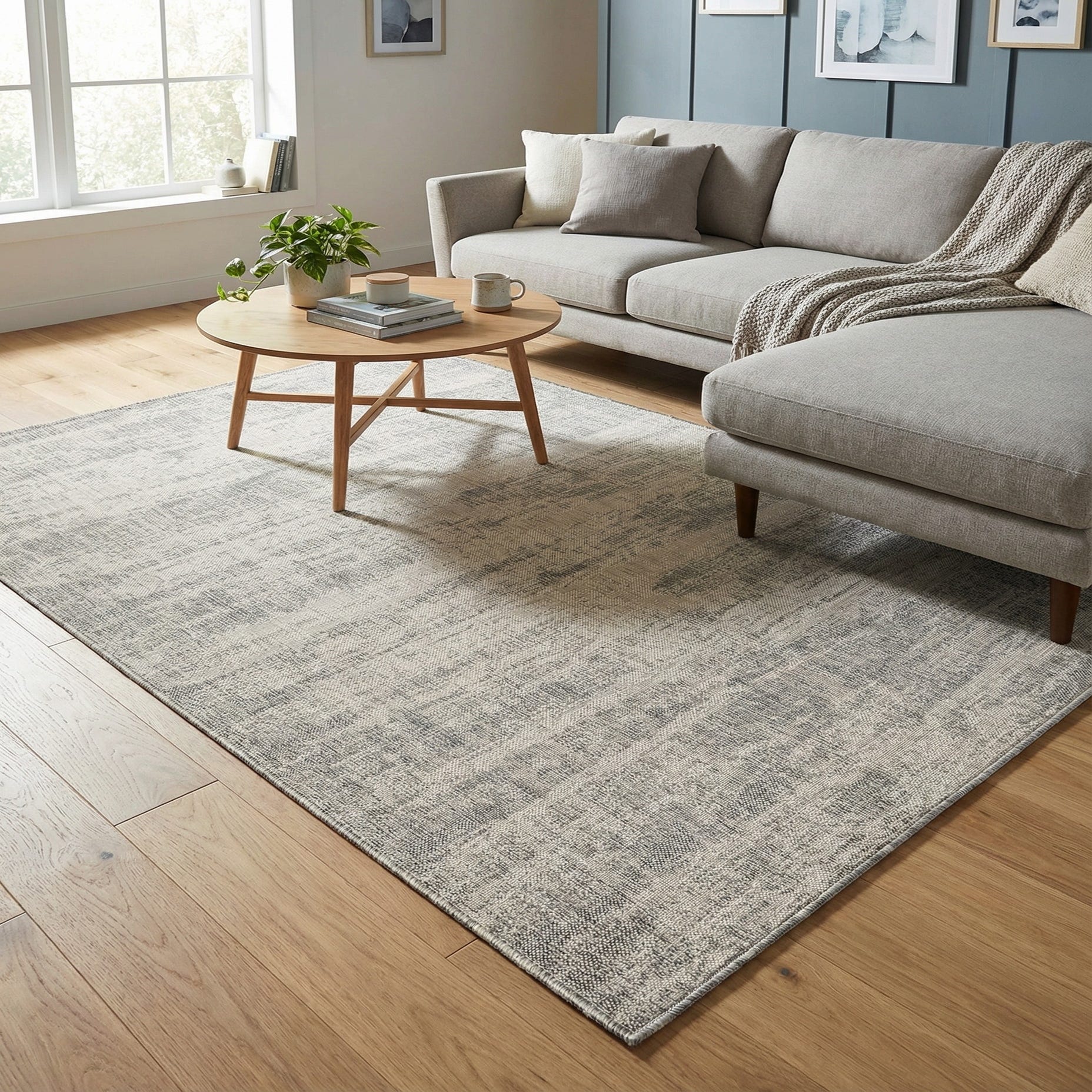 Primary color is Gray. Colors in this rug include: Gray, Ivory.