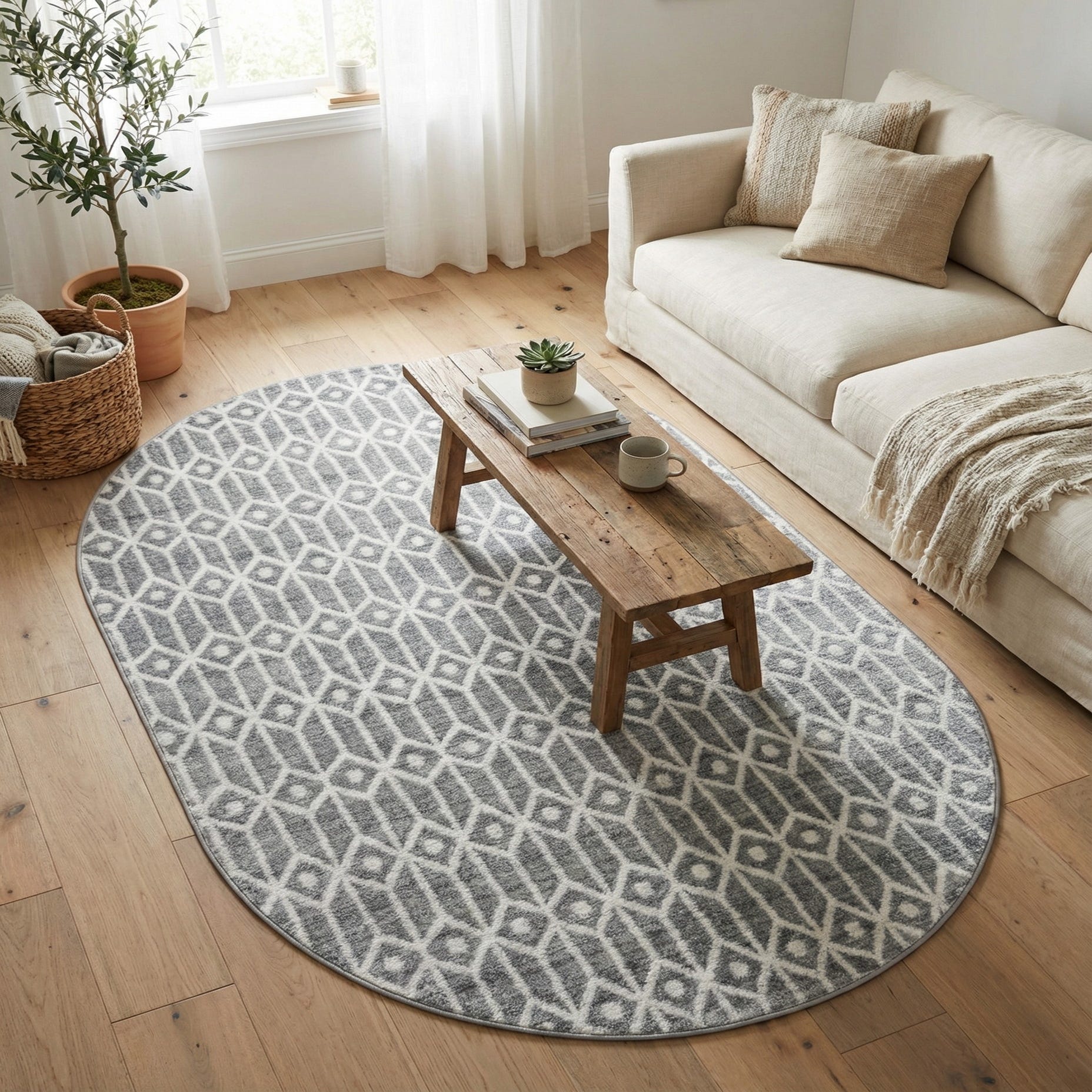 5' 3 x 8' Lattice Trellis Oval Rug