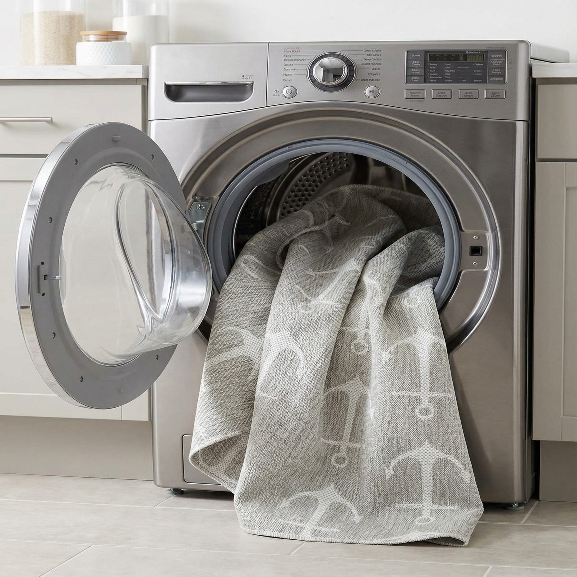 5' 3 x 8' Washable Coastal Indoor / Outdoor Oval Rug
