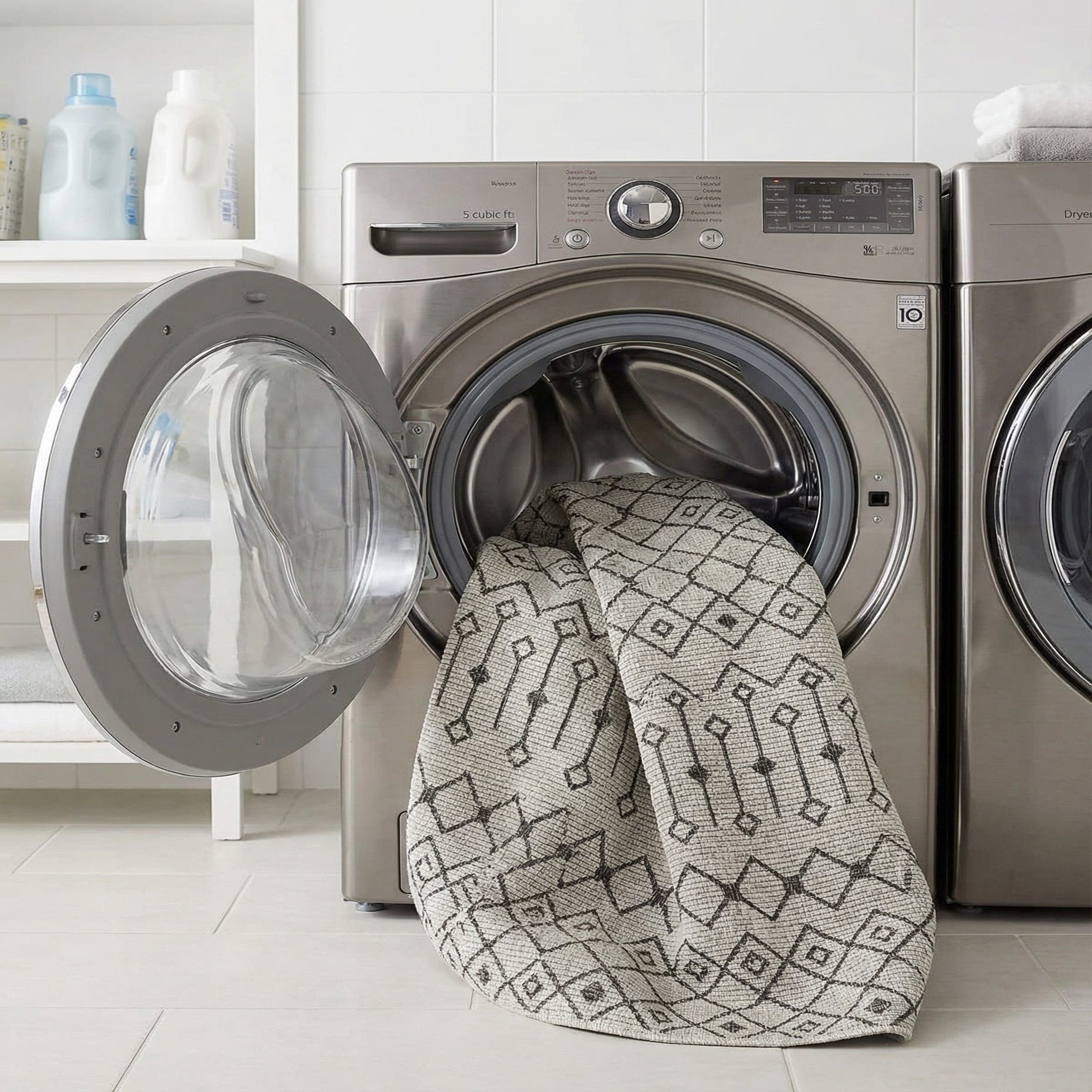 Detail image of 5' 3 x 8'  Washable Trellis Indoor / Outdoor Oval Rug