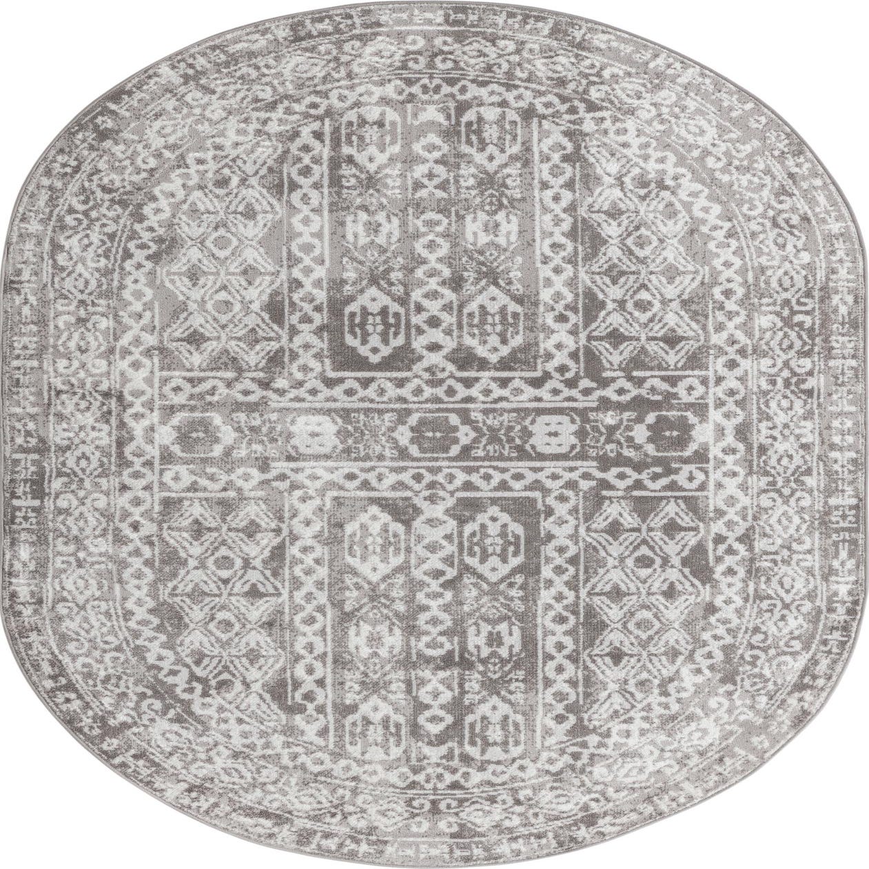 Primary color is Gray. Colors in this rug include: Gray, Ivory.