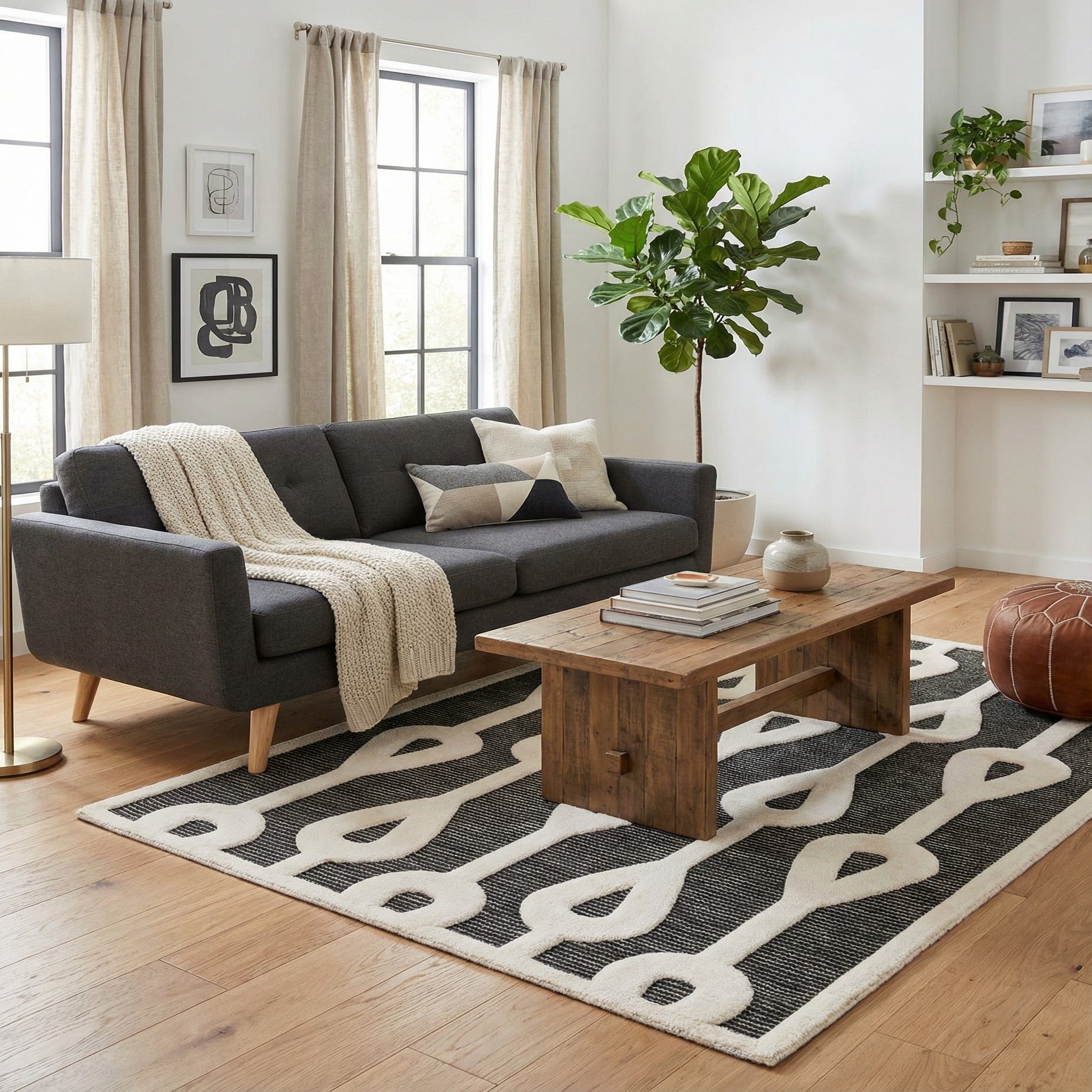 Primary color is Gray. Colors in this rug include: Gray, Ivory.