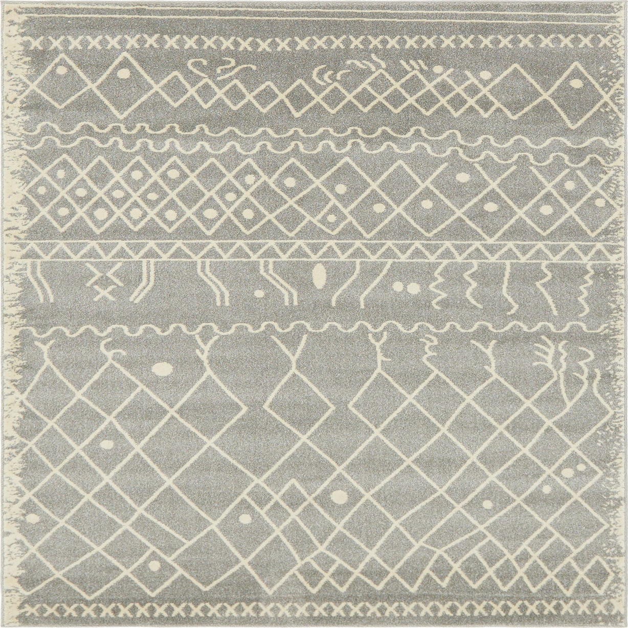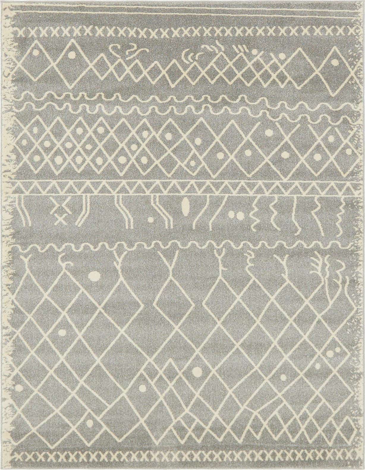 Primary color is Gray. Colors in this rug include: Gray, Ivory.