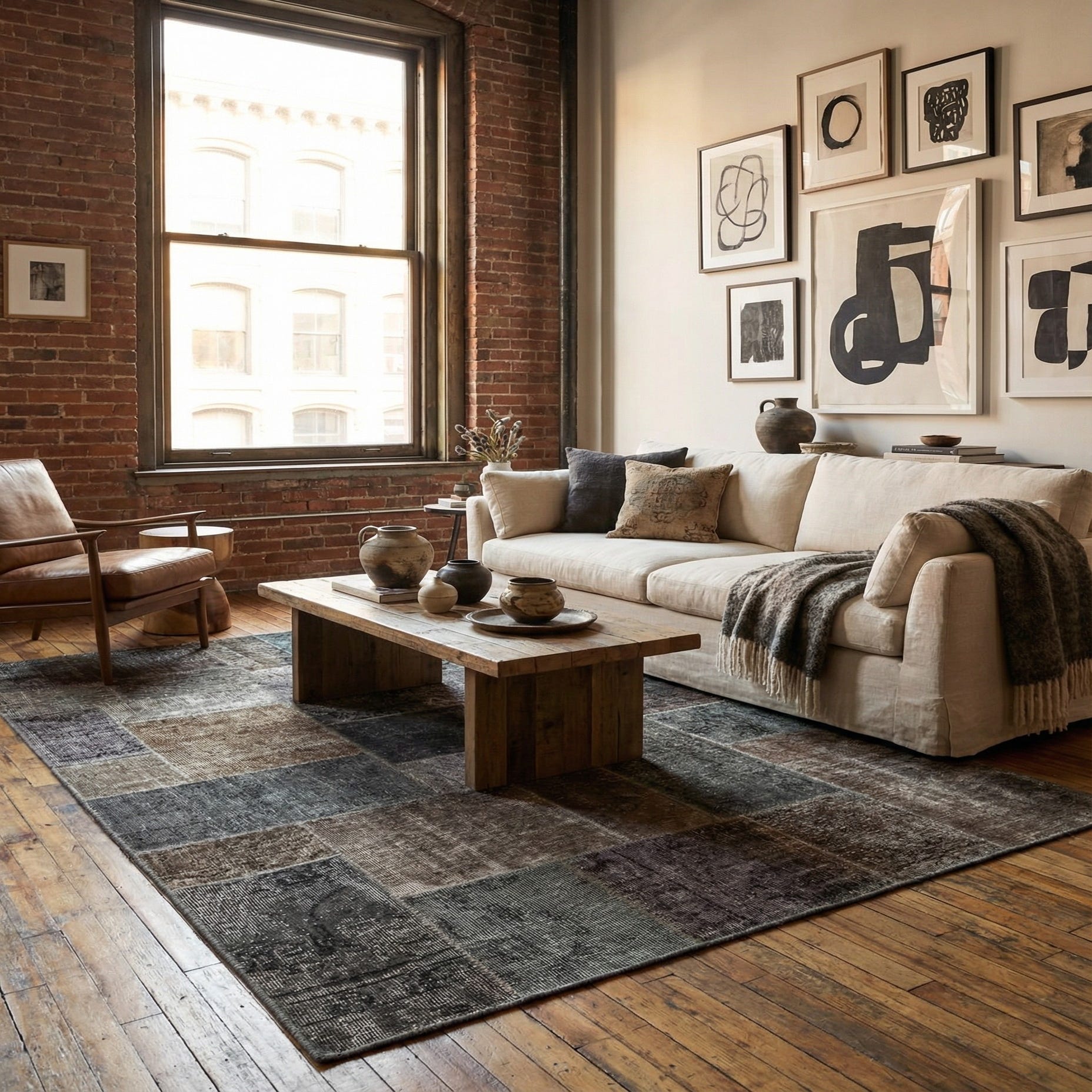 Primary color is Gray. Colors in this rug include: Gray, Brown, Ivory, Olive.