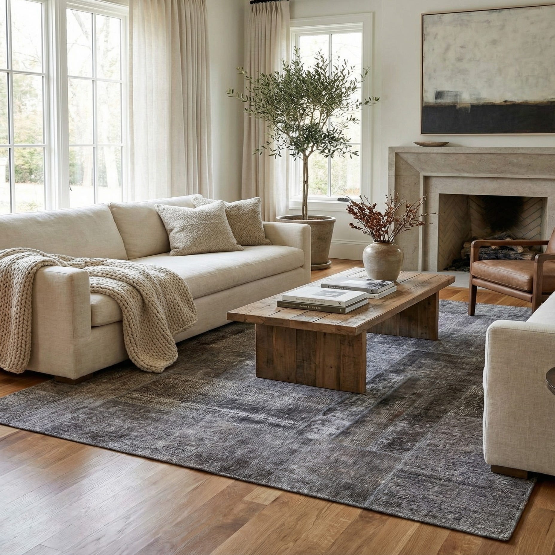 Primary color is Gray. Colors in this rug include: Gray, Black.