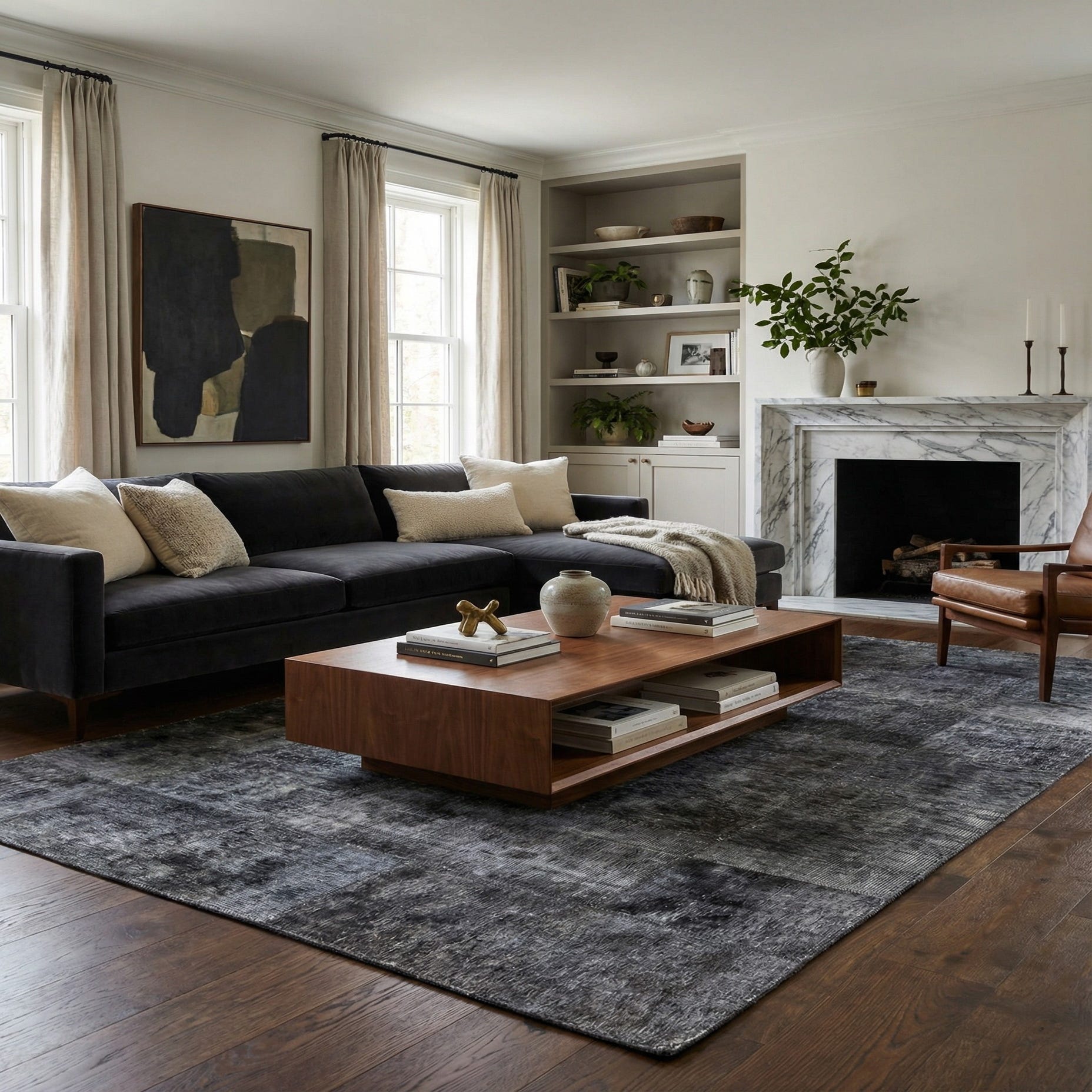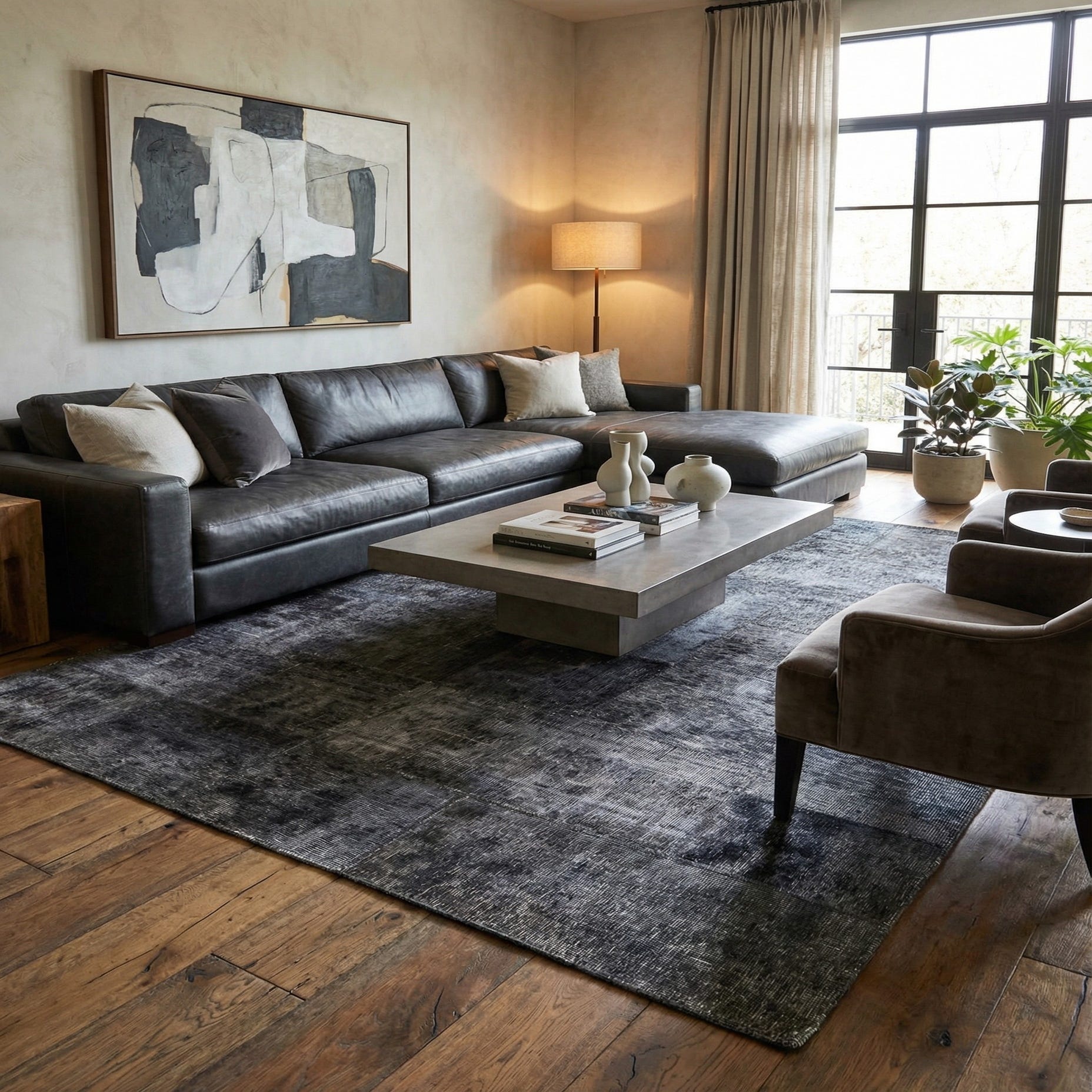 Primary color is Gray. Colors in this rug include: Gray, Black, Ivory.