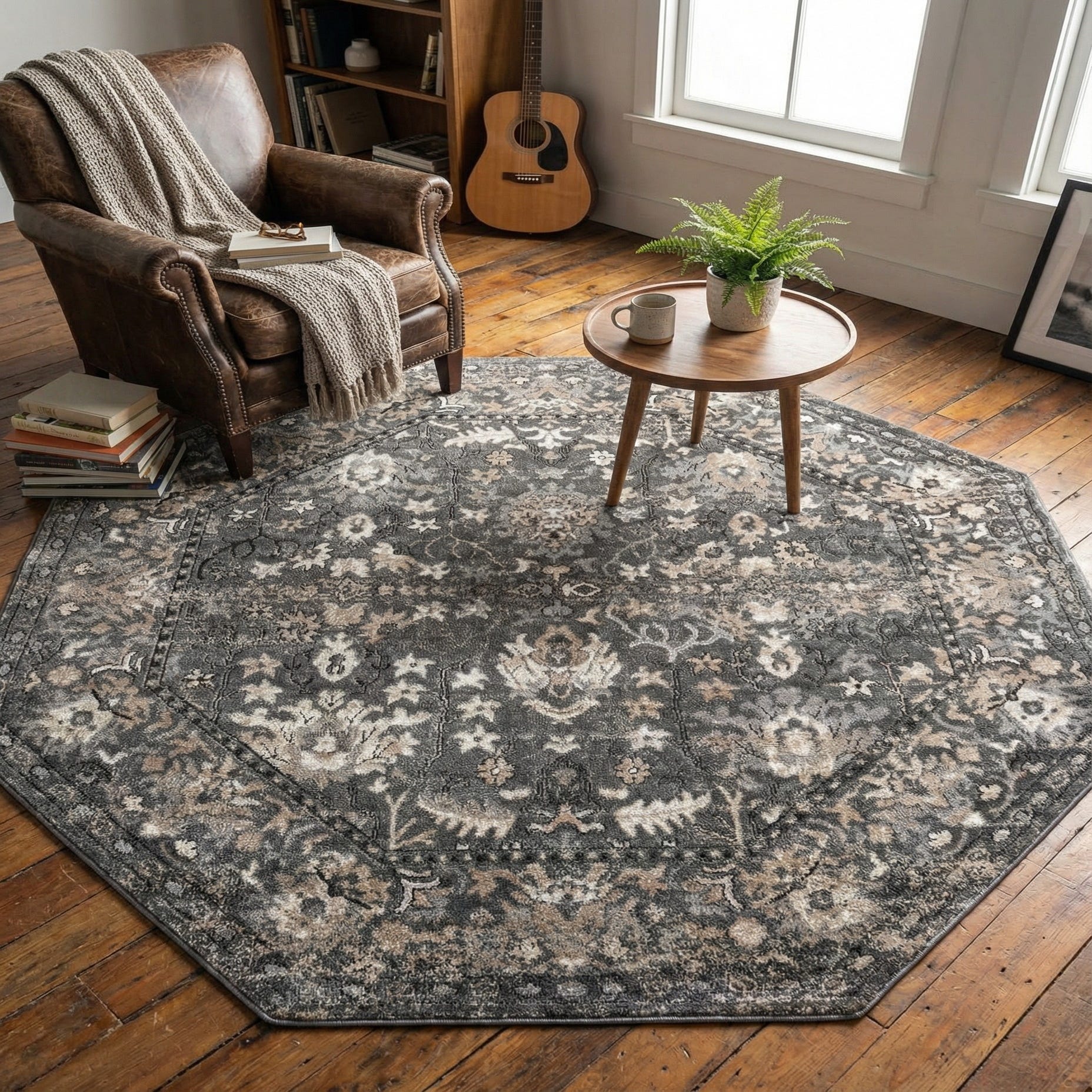 Primary color is Gray. Colors in this rug include: Gray, Beige, Ivory.
