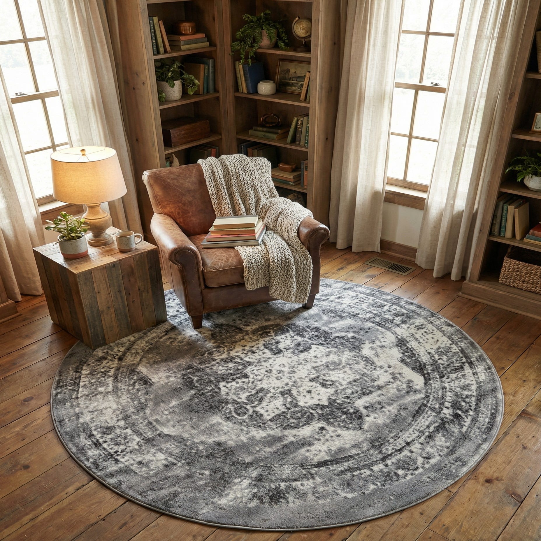 Primary color is Gray. Colors in this rug include: Gray, Beige.