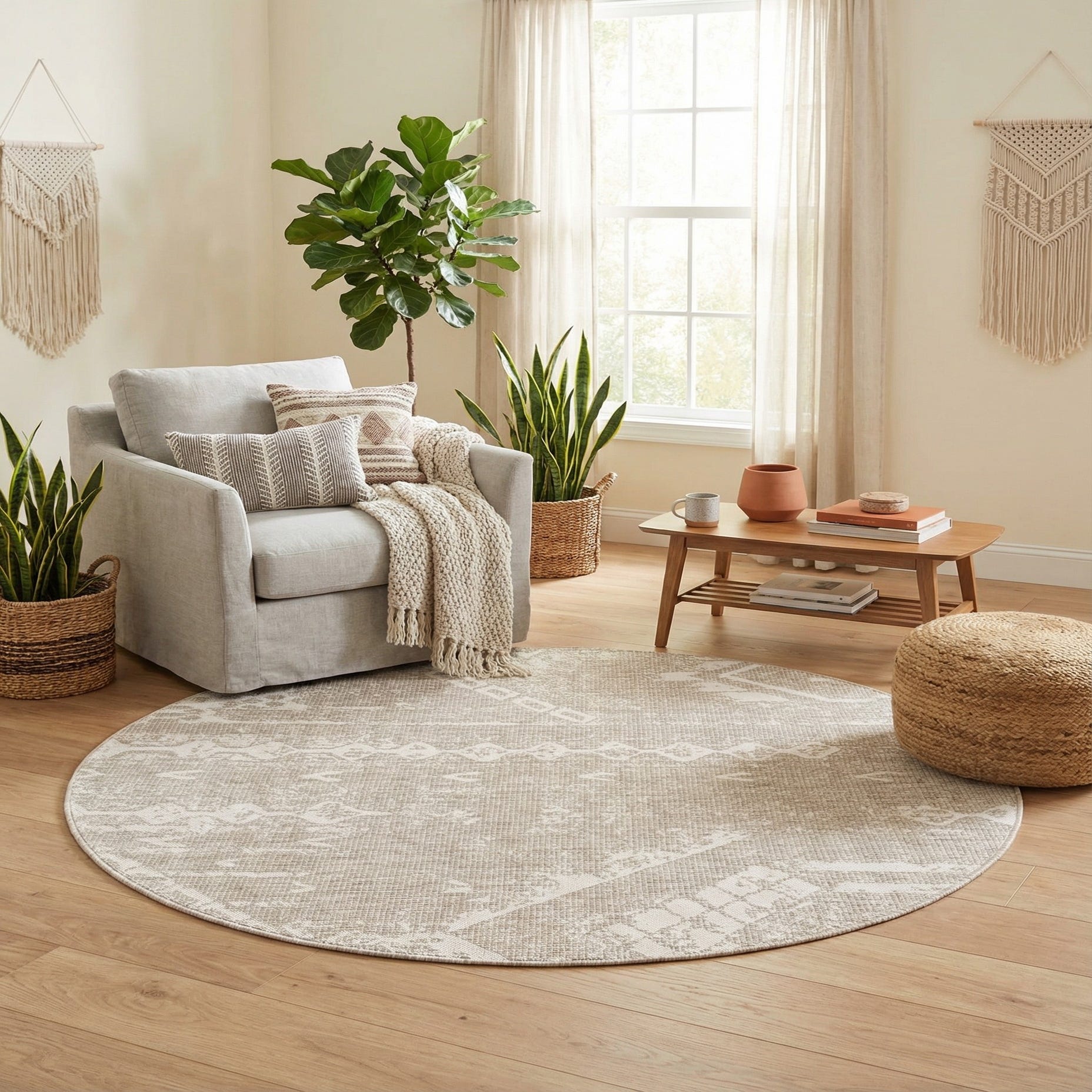 6' x 6' Washable Bohemian Indoor / Outdoor Round Rug