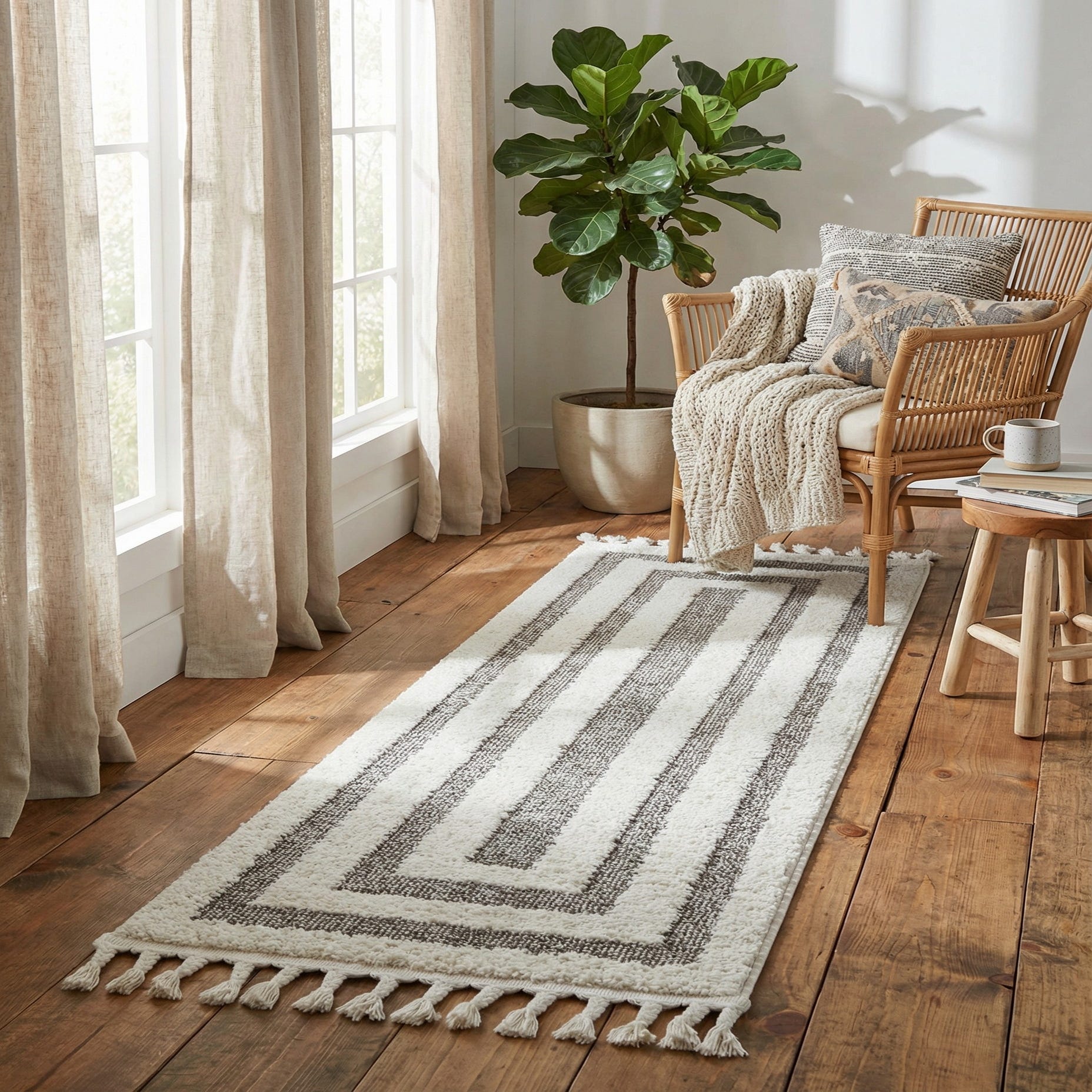 Primary color is Gray. Colors in this rug include: Gray, Ivory.