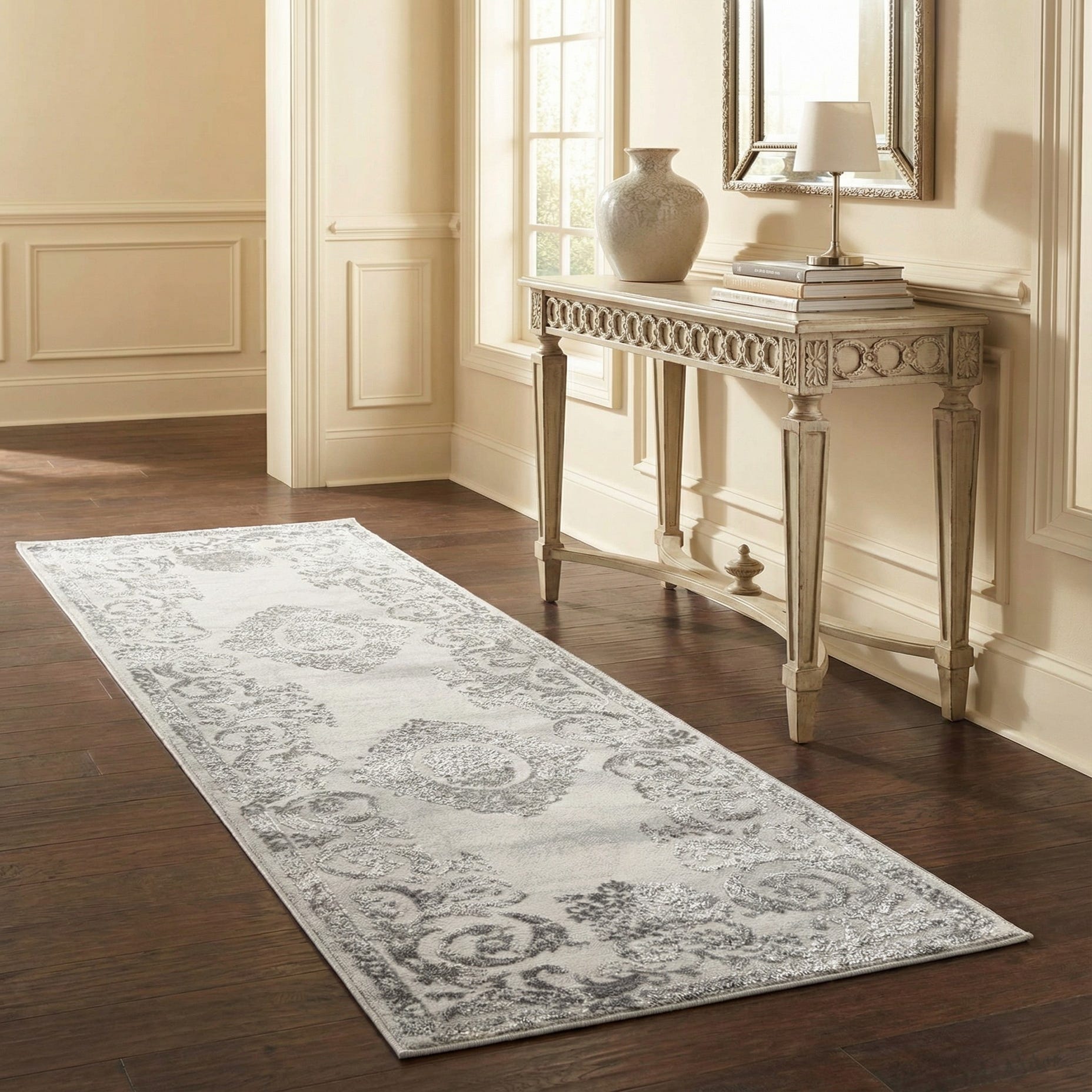 Primary color is Gray. Colors in this rug include: Gray, Beige, Ivory.