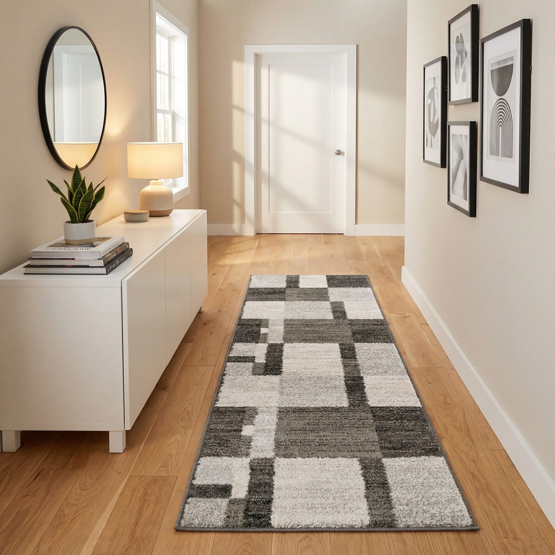Primary color is Gray. Colors in this rug include: Gray, Ivory, Black.