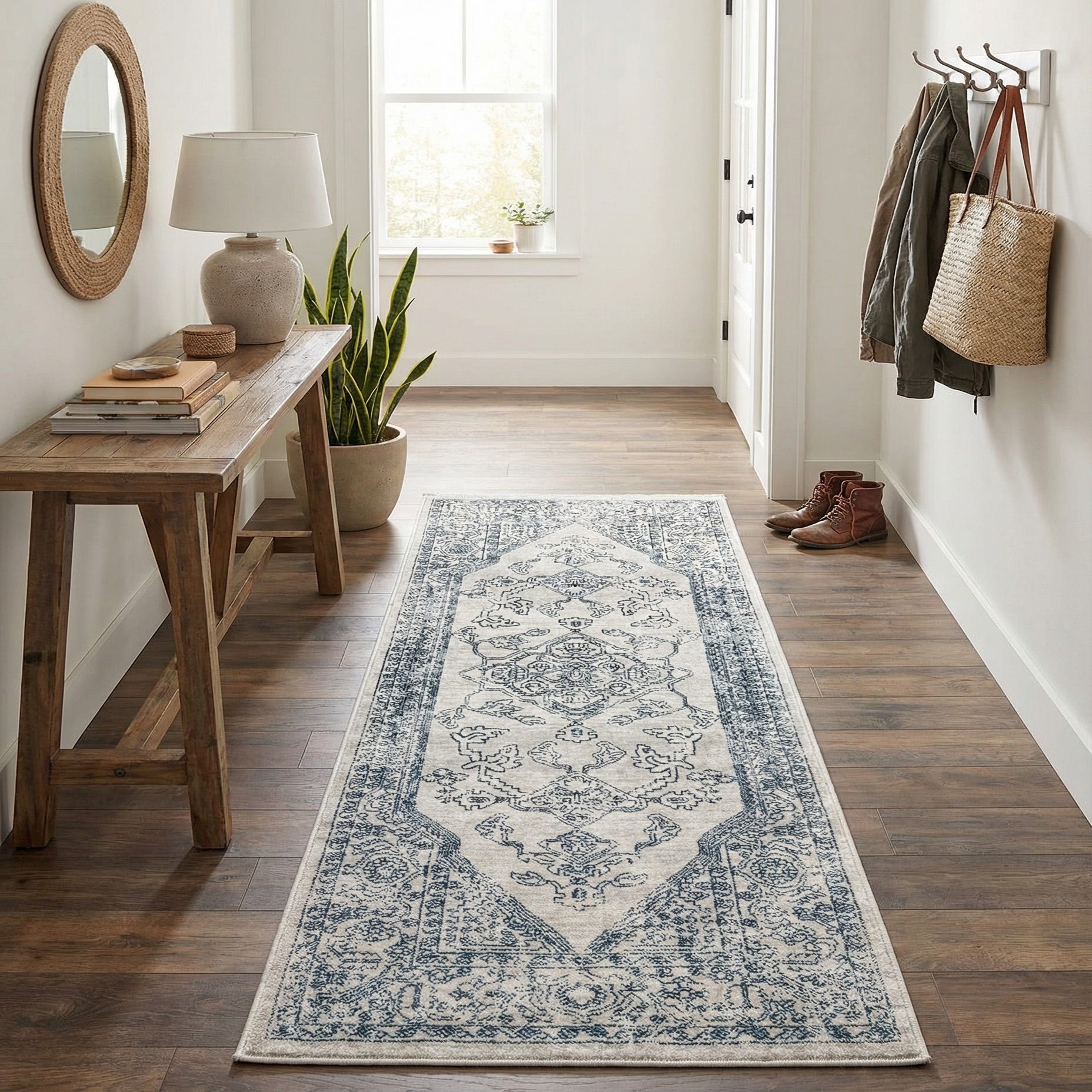 Primary color is Gray. Colors in this rug include: Gray, Ivory.