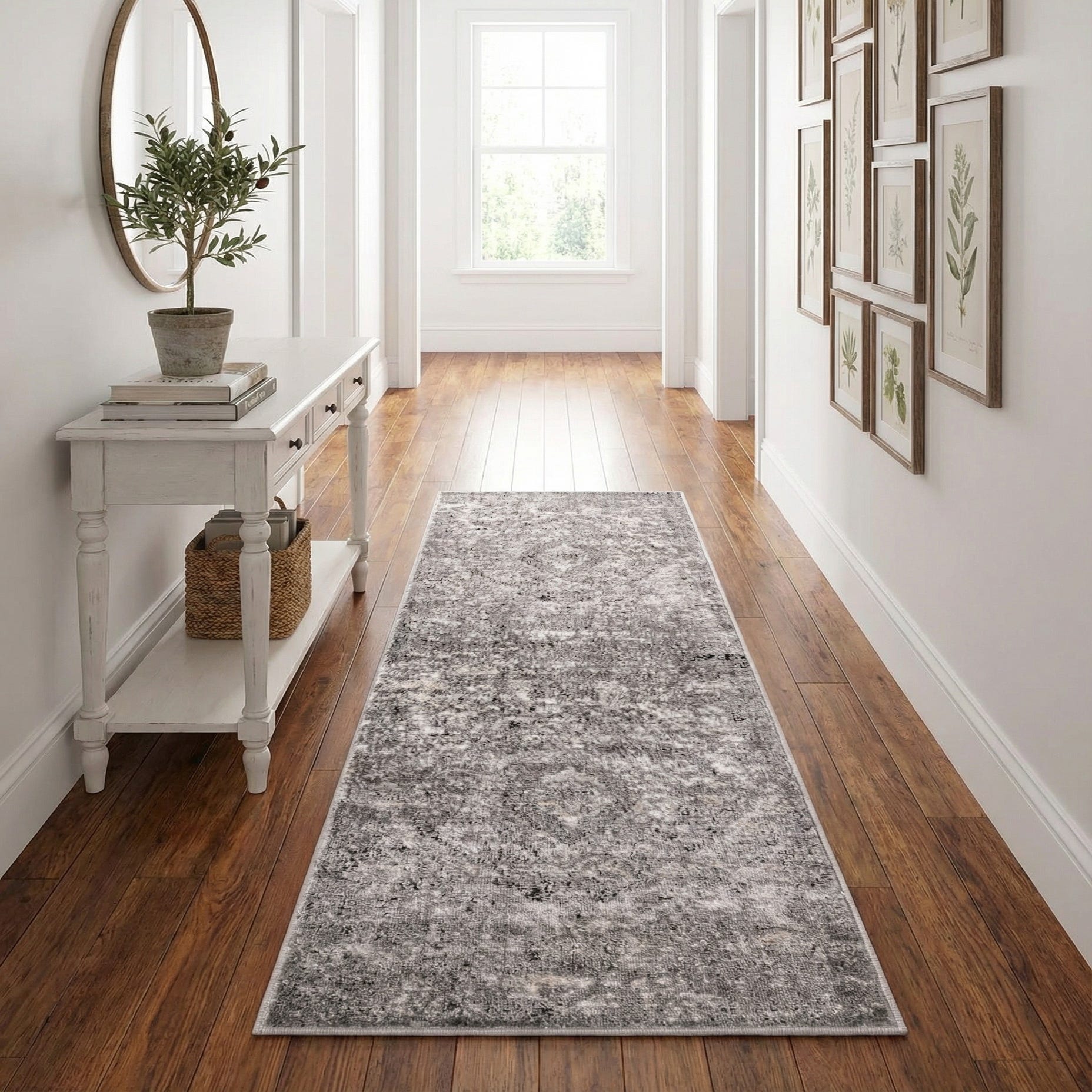 Primary color is Gray. Colors in this rug include: Gray, Ivory.