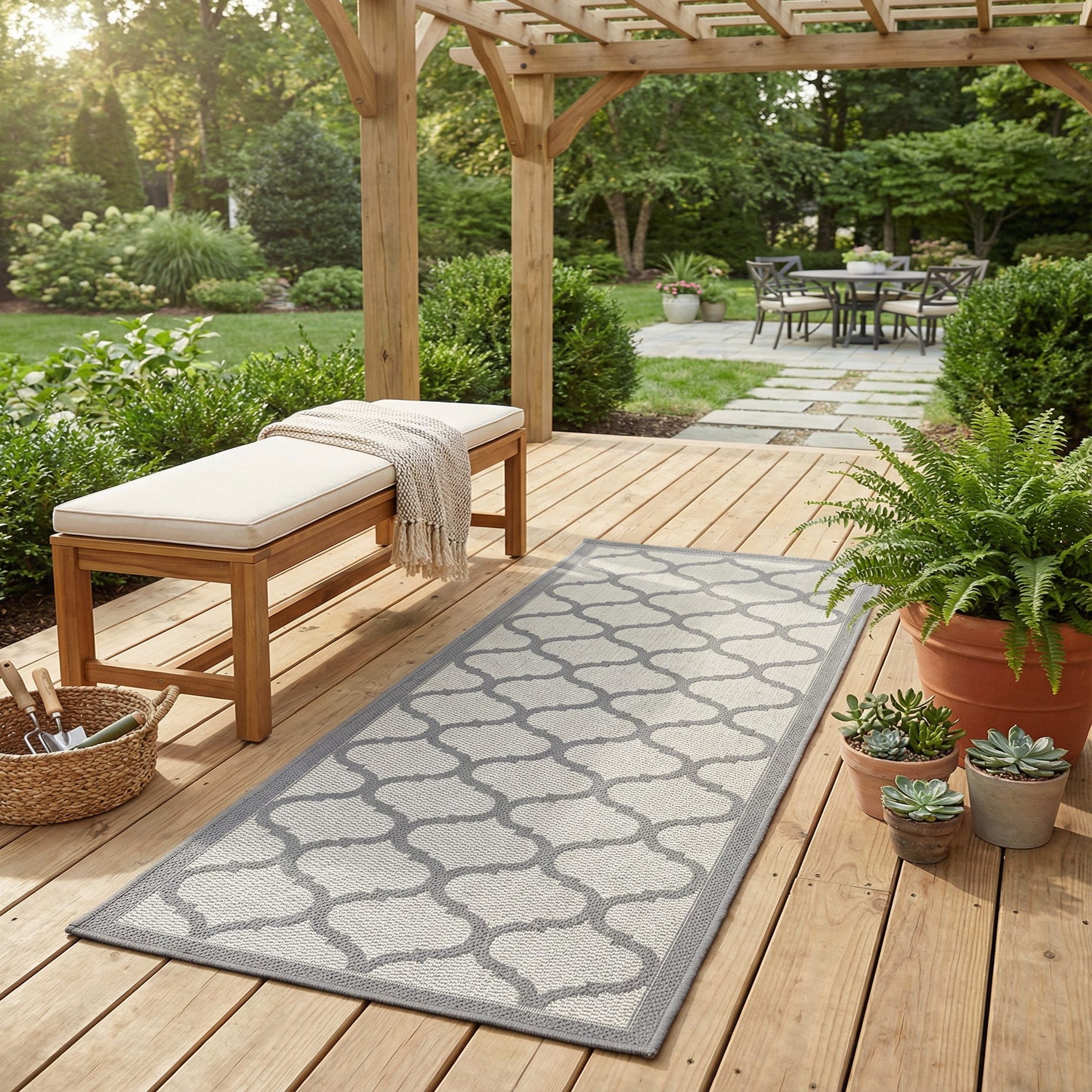 2' 2 x 6' Washable Trellis Indoor / Outdoor Runner Rug