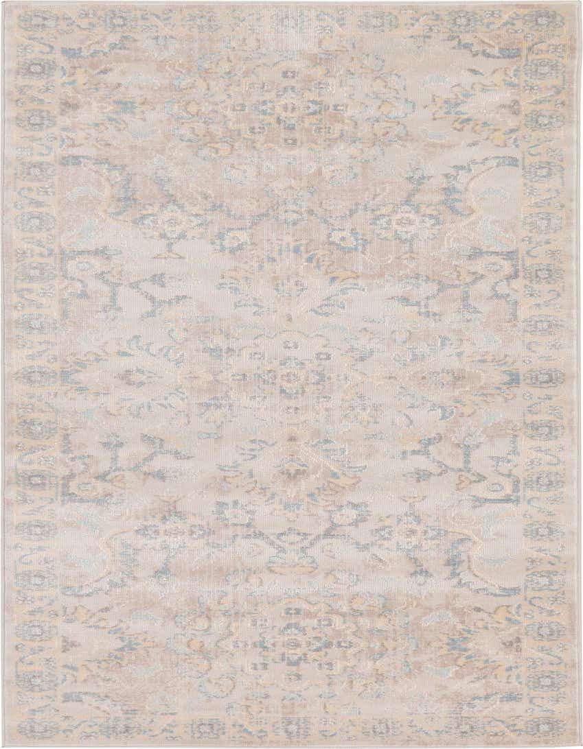 Primary color is Gray. Colors in this rug include: Gray, Beige, Blue, Light Blue, Brown.