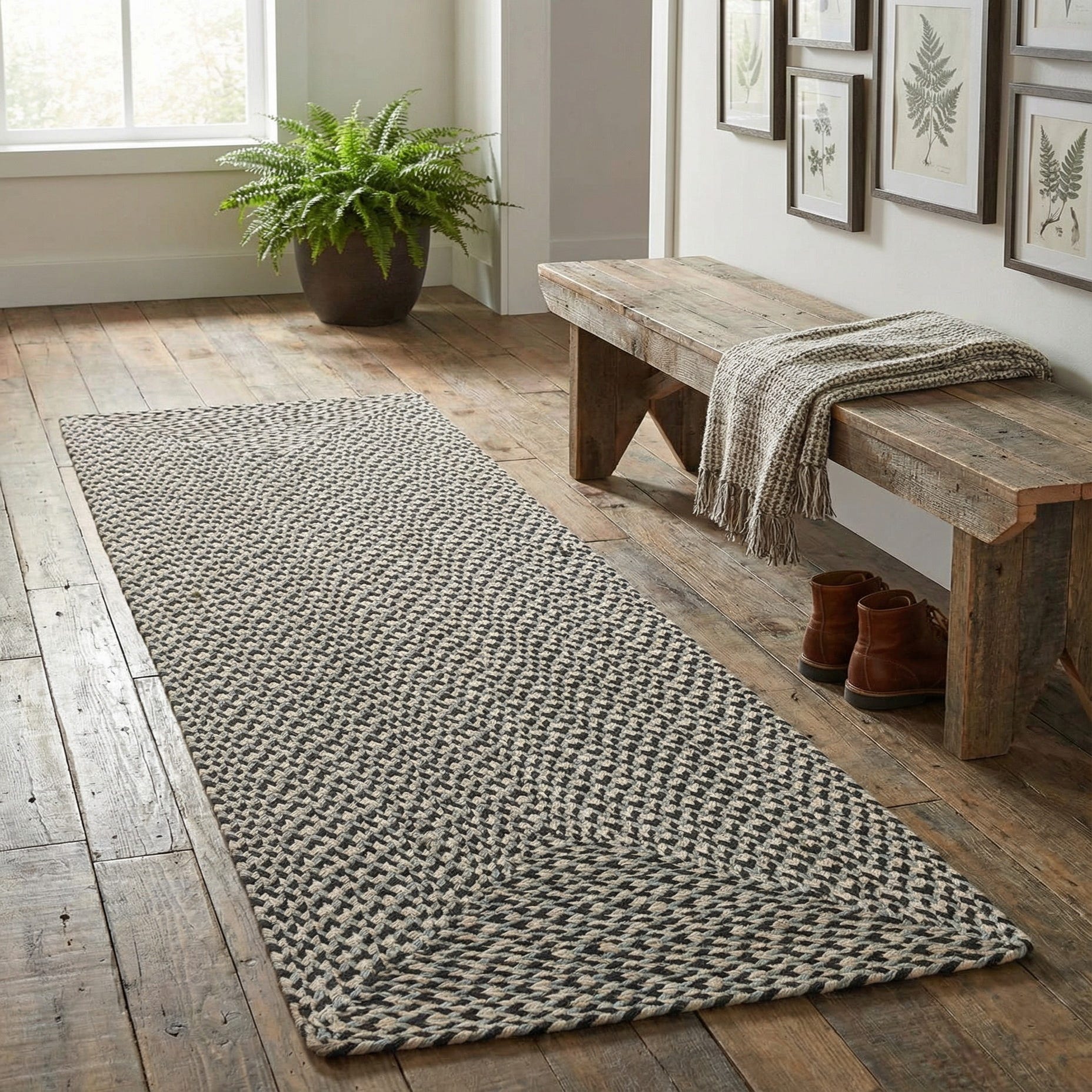 2' x 6' 1 Hand Tweed Braided Jute Runner Rug