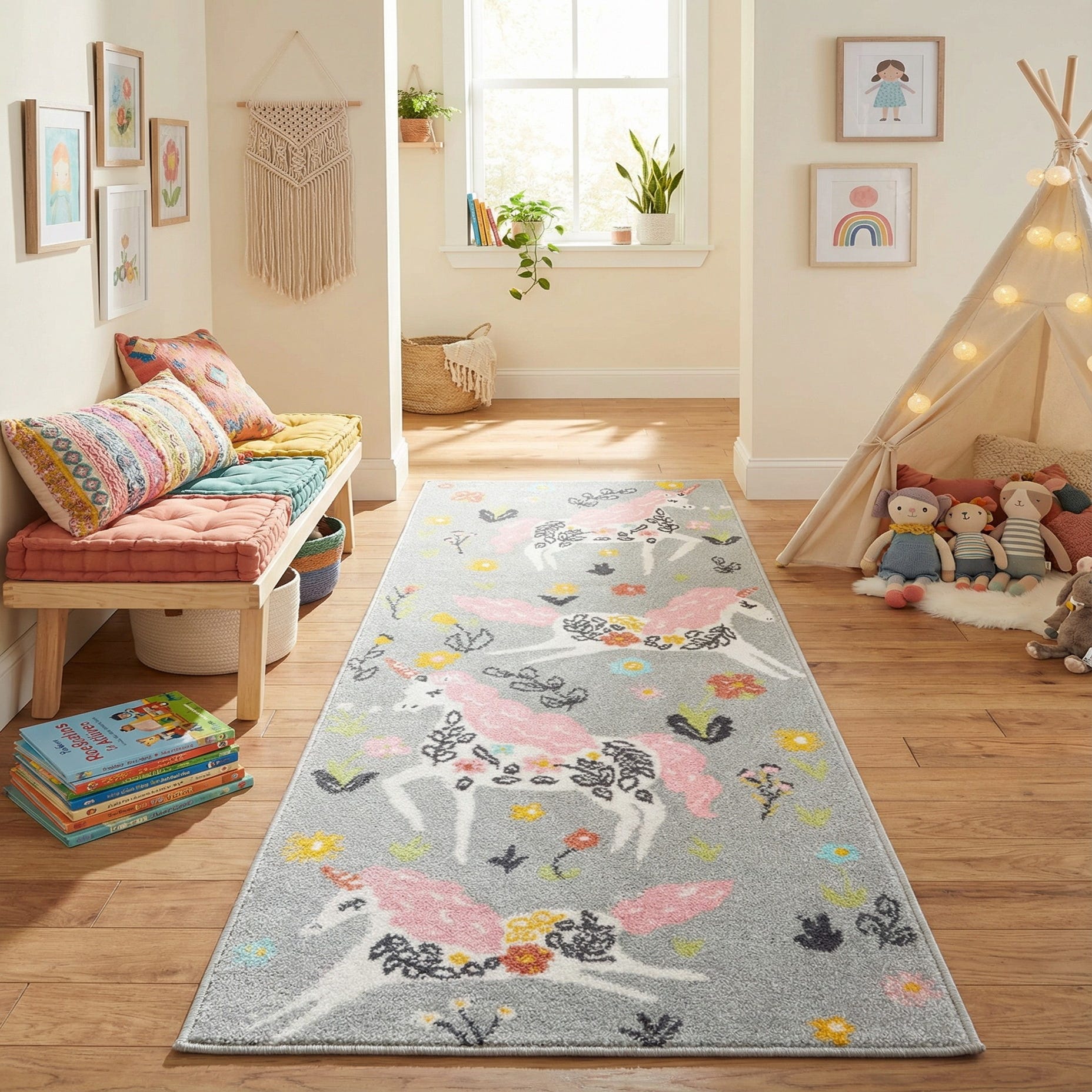 2' 2 x 6' Unicorns Whimsy Kids Runner Rug
